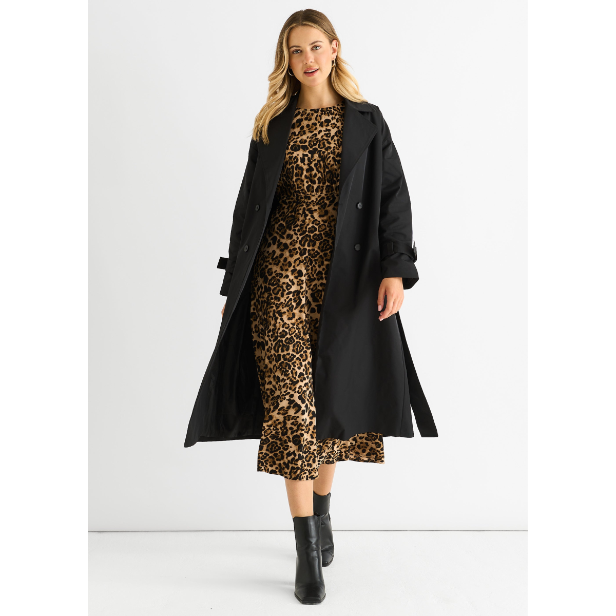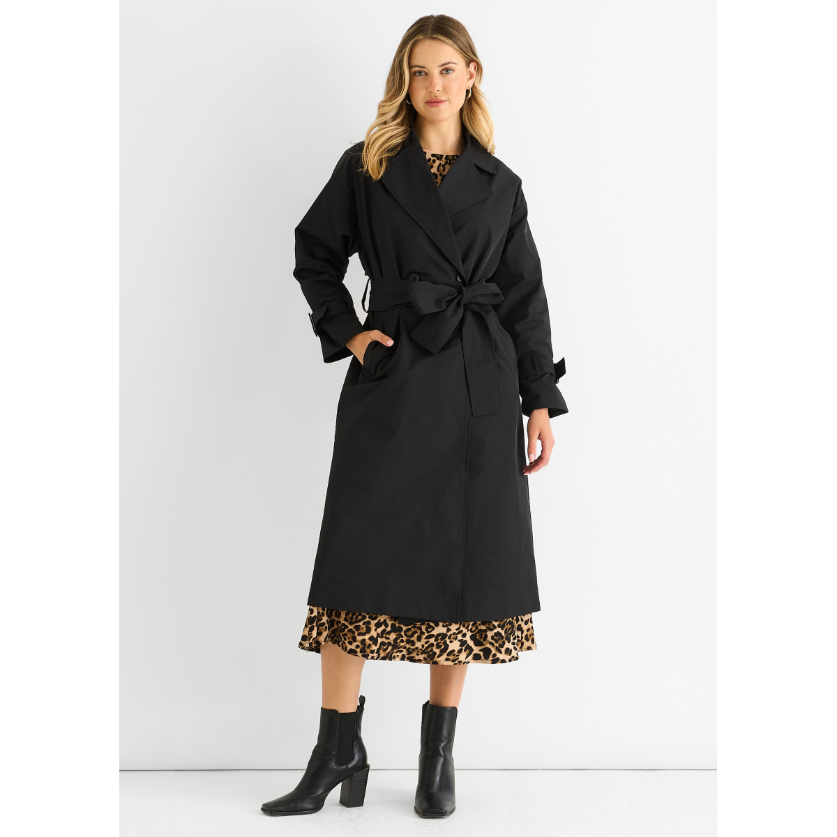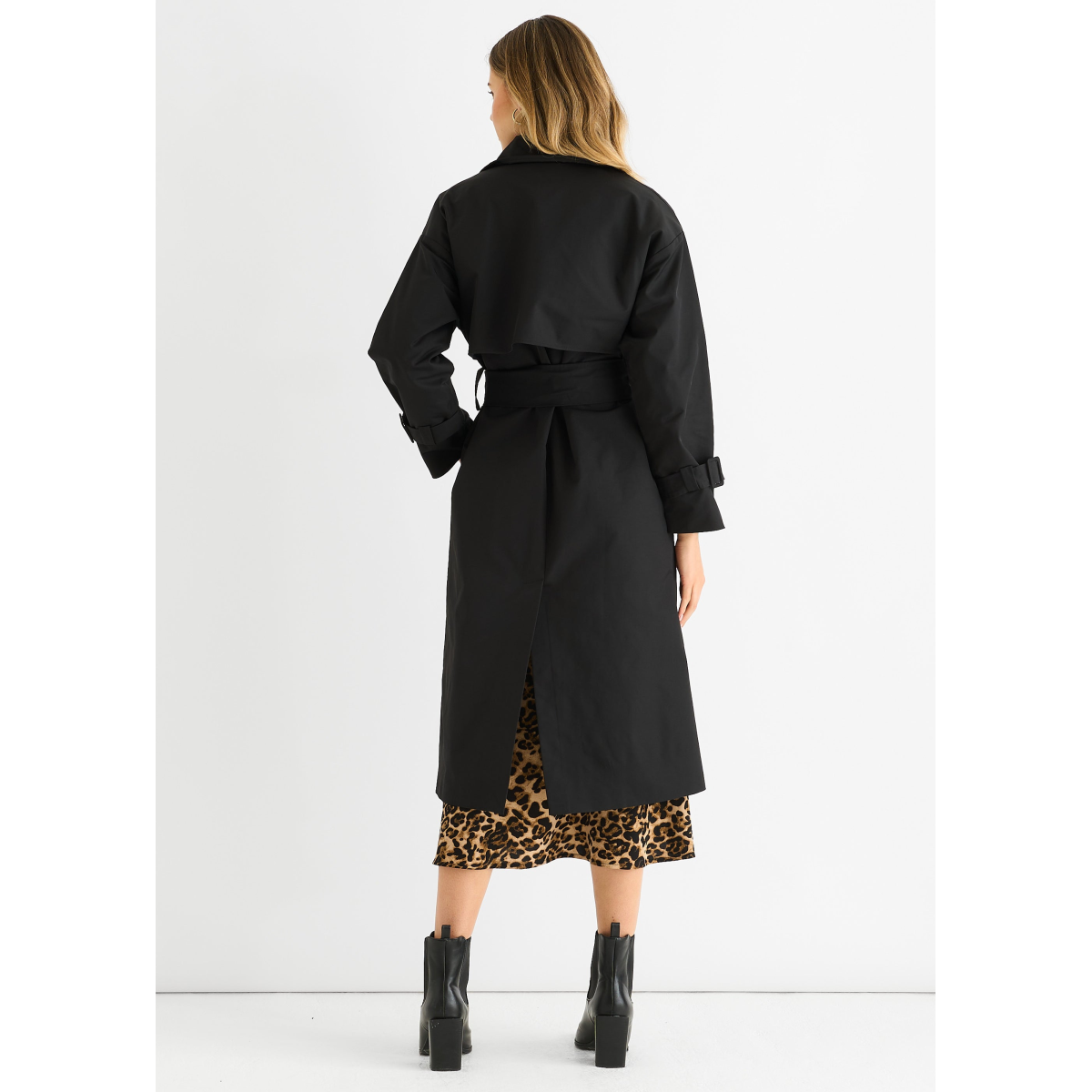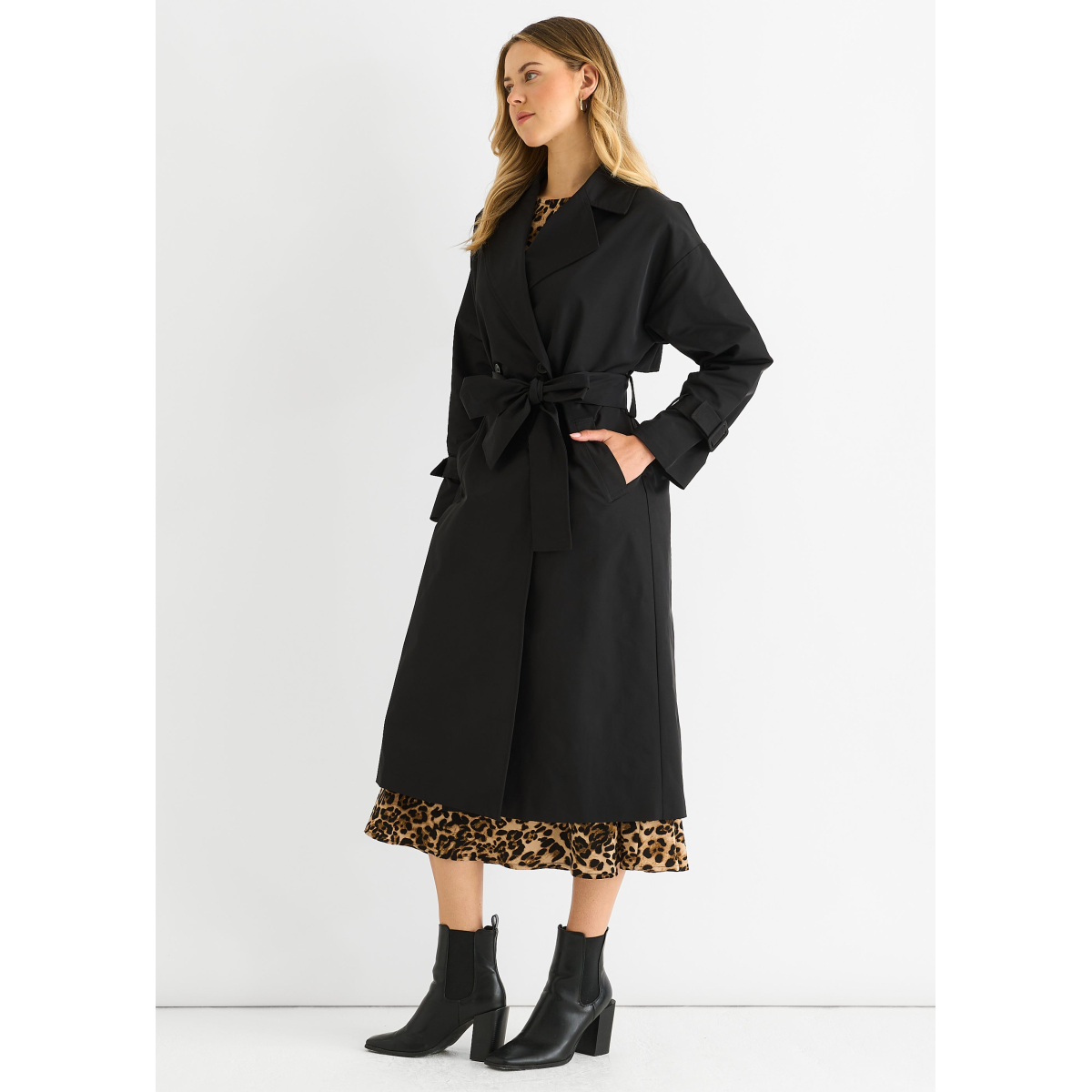 Upgrade your wardrobe with this versatile and stylish Black Double Breast Longline Belted Trench Coat. Its classic design complements any outfit, while the adjustable belt adds a touch of comfort and casual flair. Perfect for any occasion, stay chic and comfortable in this must-have coat.