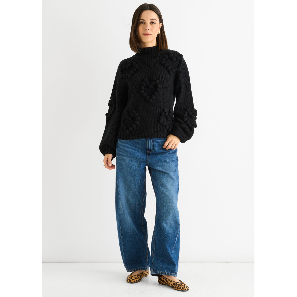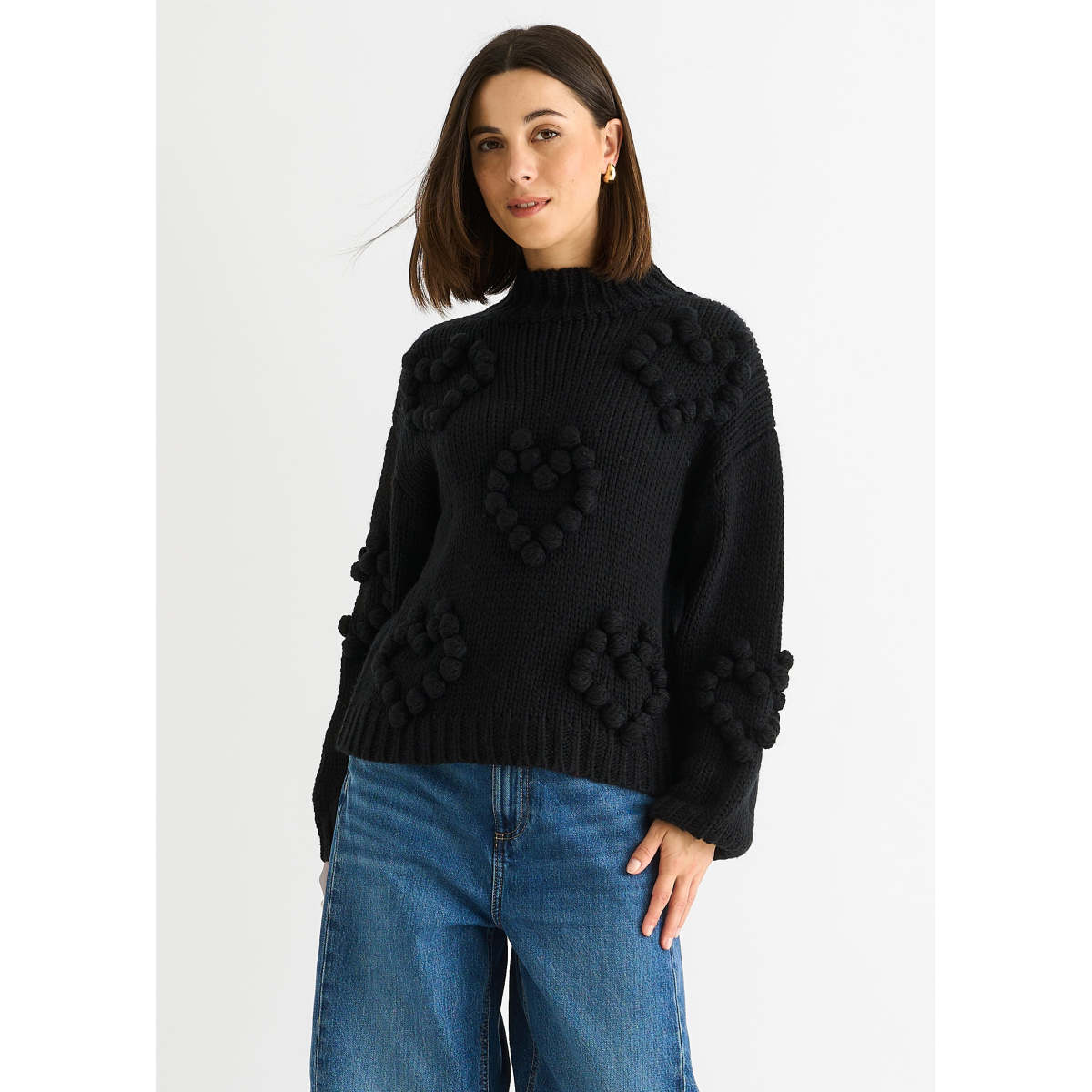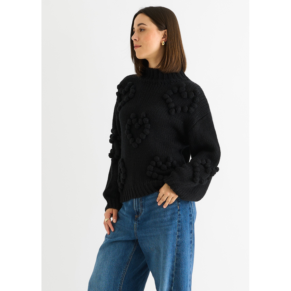 Black Heart Bubble Chunky Knit High Neck Jumper