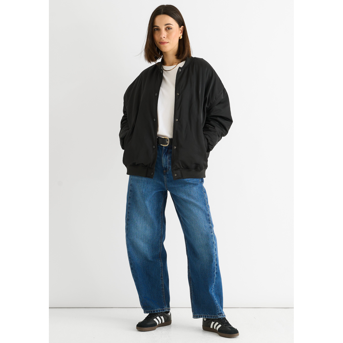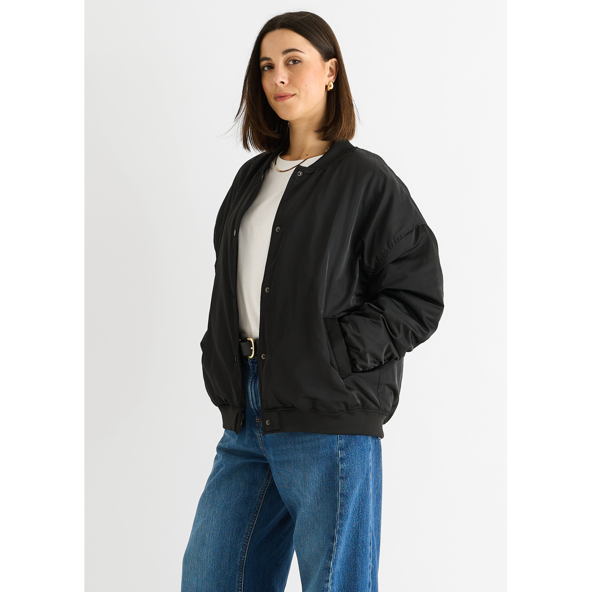 Introducing our Black Padded Oversized Bomber Jacket. Stay warm and in style with this comfortable and trendy jacket. Featuring a padded design and oversized fit, it's perfect for any occasion. Upgrade your wardrobe with this must-have jacket.