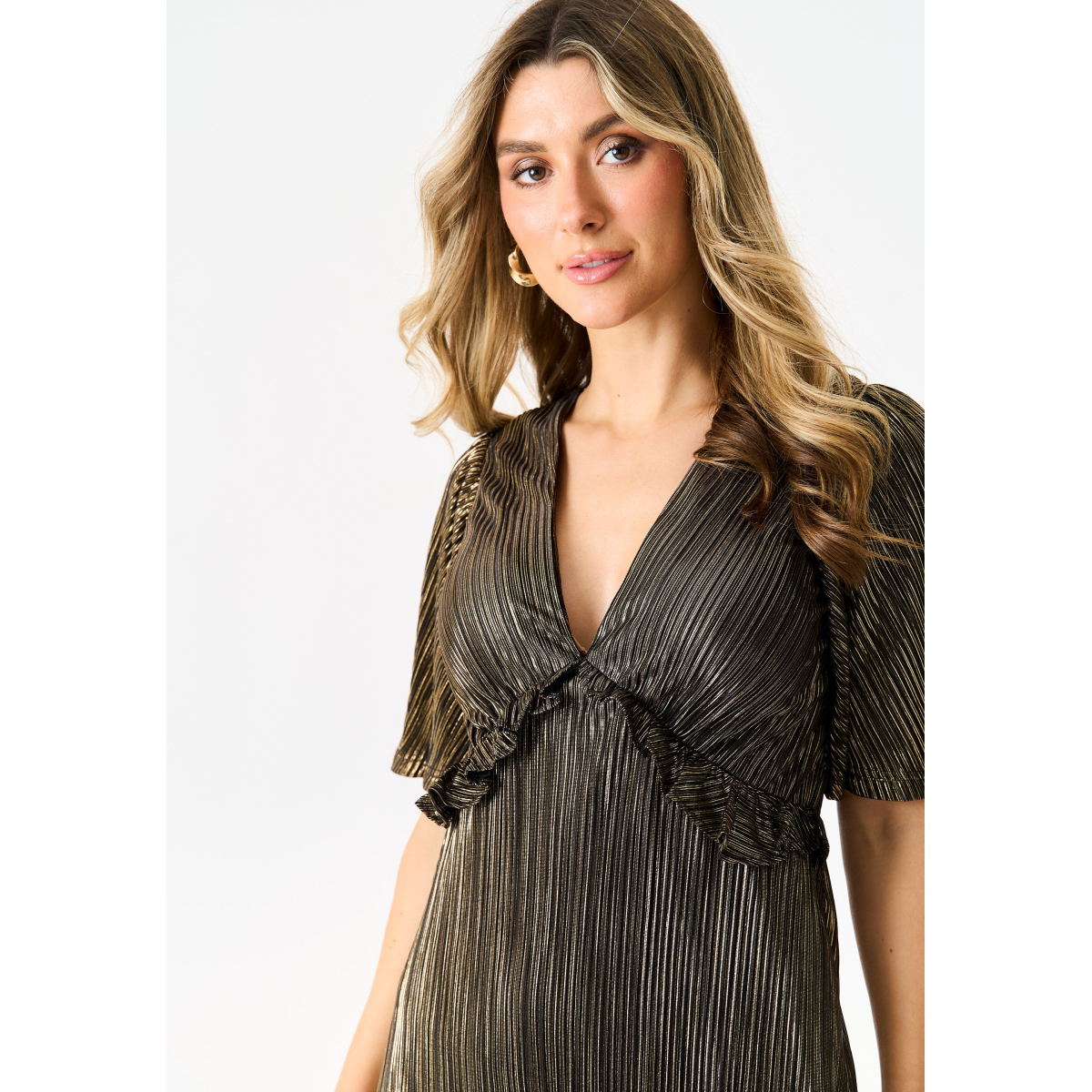 Elevate your fashion game with our stunning Black Metallic Plisse Maxi Dress. The sleek black design with eye-catching metallic accents is sure to turn heads. Its chic and flowy silhouette provides an effortlessly elegant look for any occasion. Stand out in style with our must-have dress.