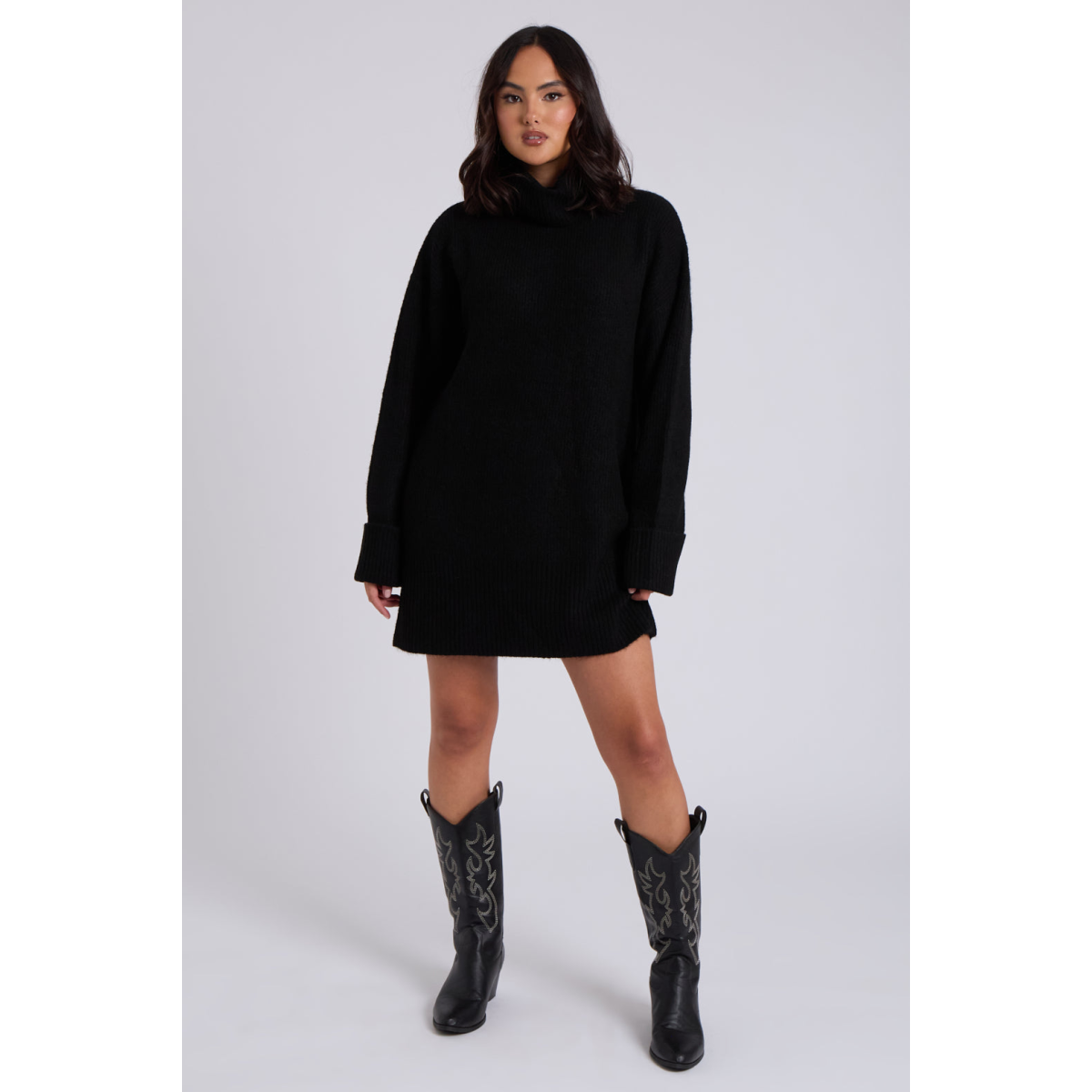 Introducing our Mini Roll Neck Dress—a perfect blend of chic and cosy. This dress features a stylish roll neck design and a flattering mini length, offering both comfort and a touch of sophistication. Crafted from soft, high-quality fabric, it provides warmth and elegance in one versatile piece. Ideal for layering or wearing on its own, the Mini Roll Neck Dress is a timeless addition to any wardrobe, seamlessly transitioning from day to evening with effortless grace.