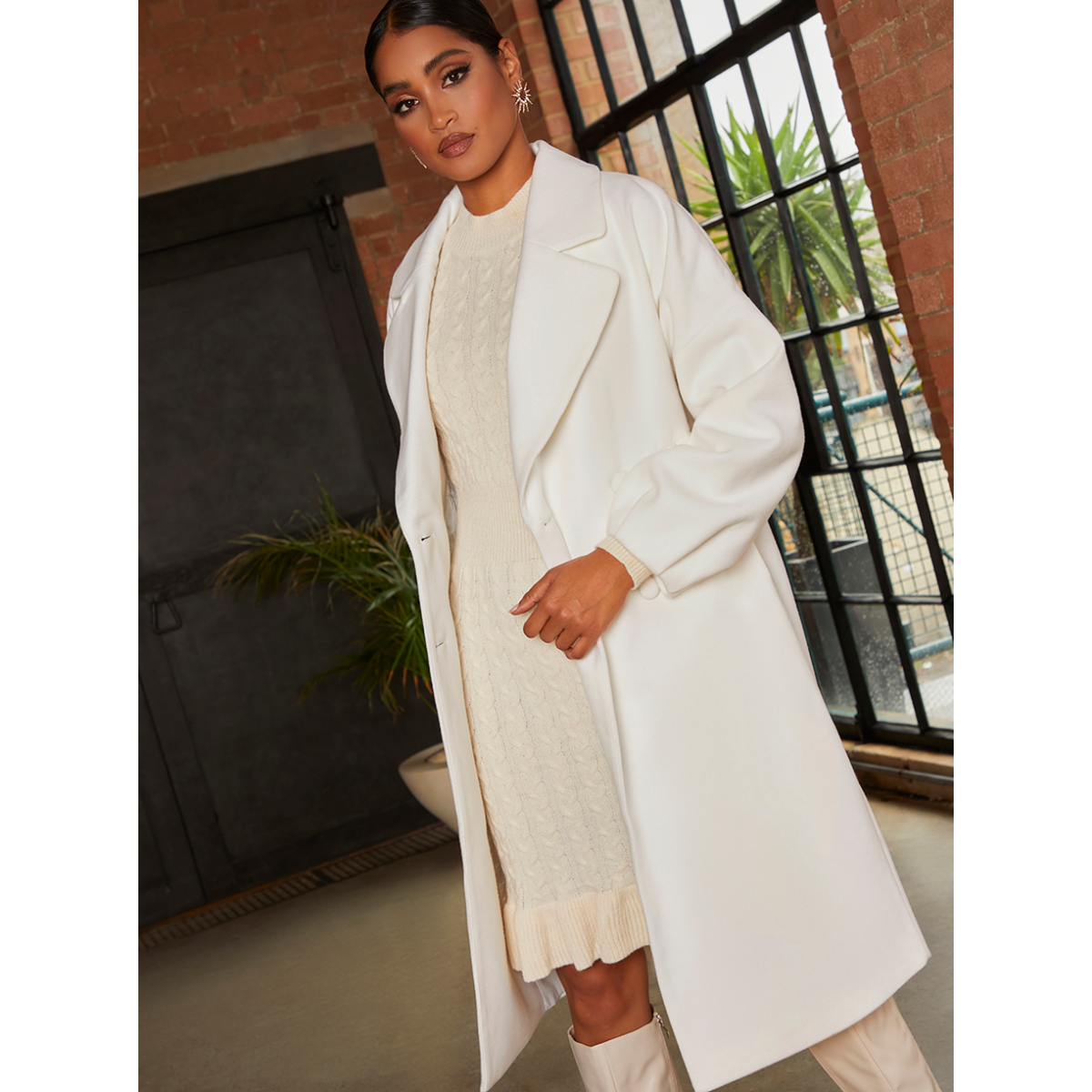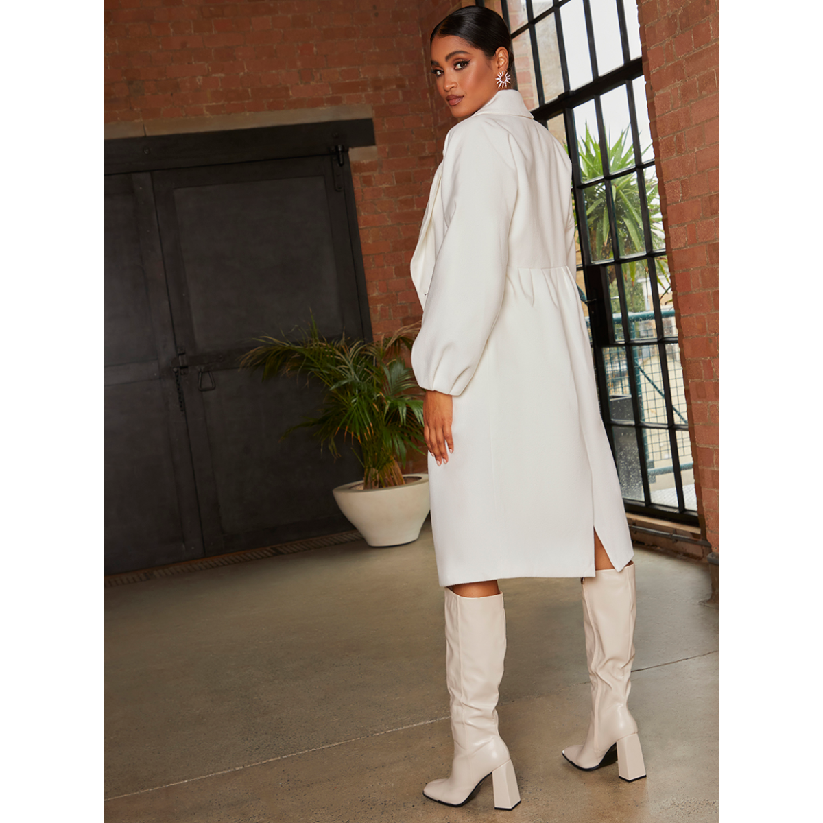 Double Breasted Balloon Sleeve Coat in Cream