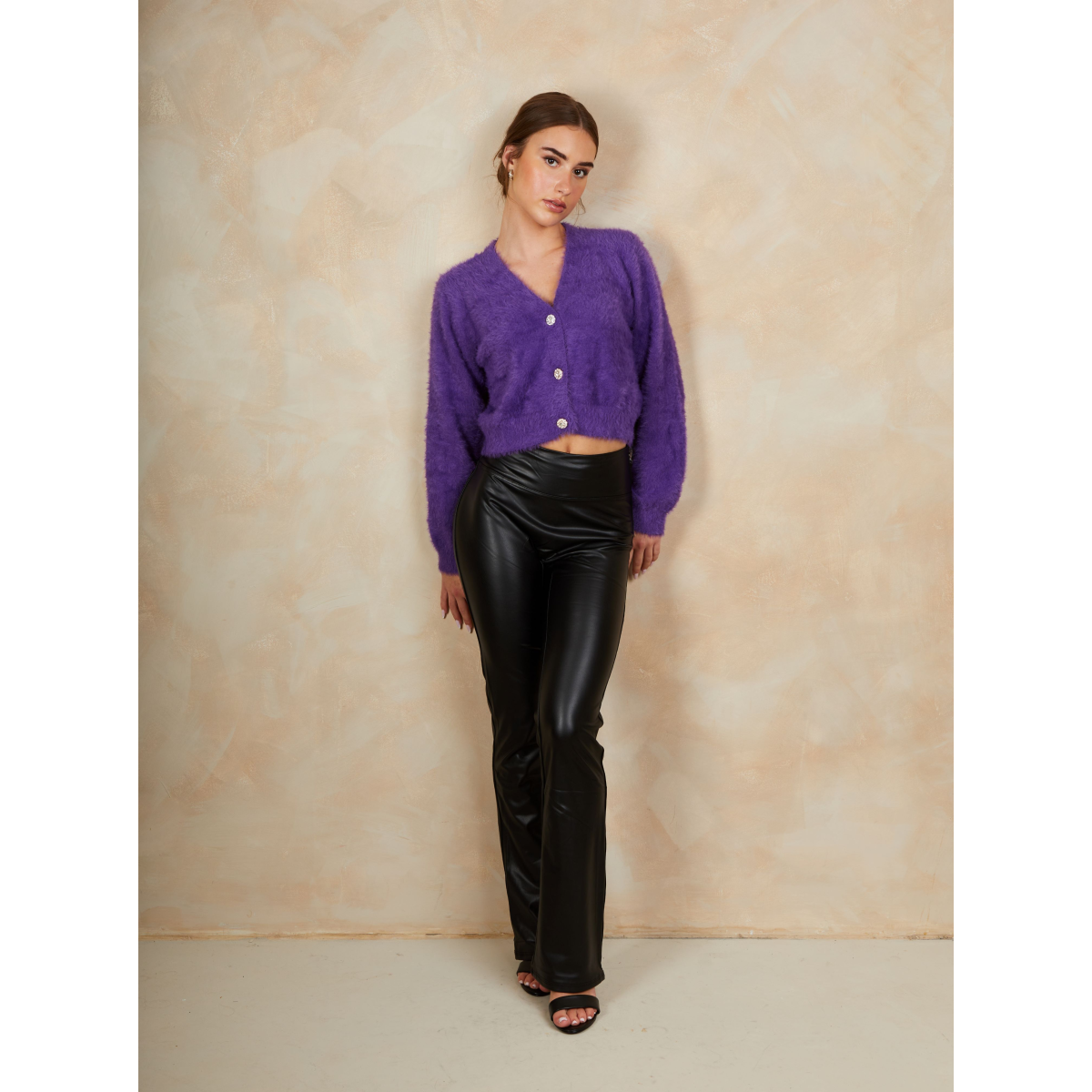 Fluffy Yarn Knitted Cardigan in Purple