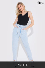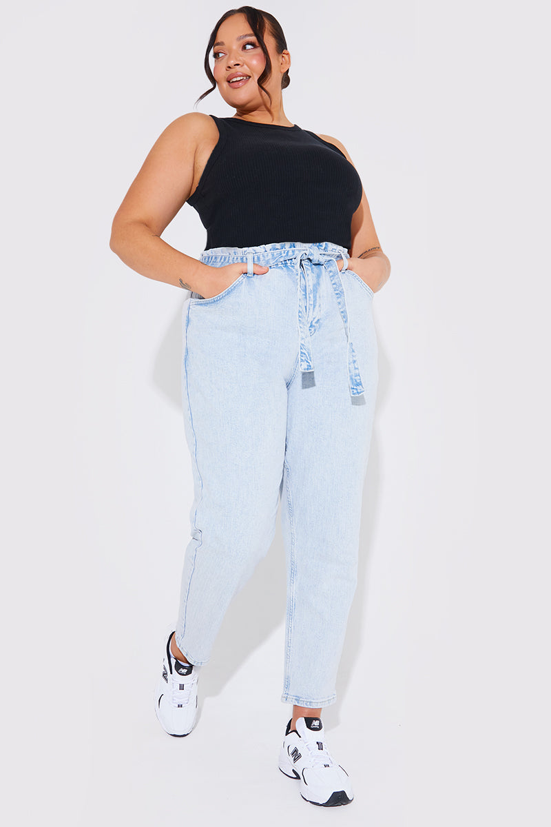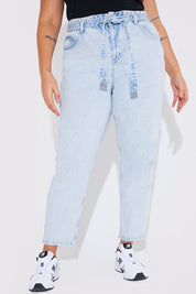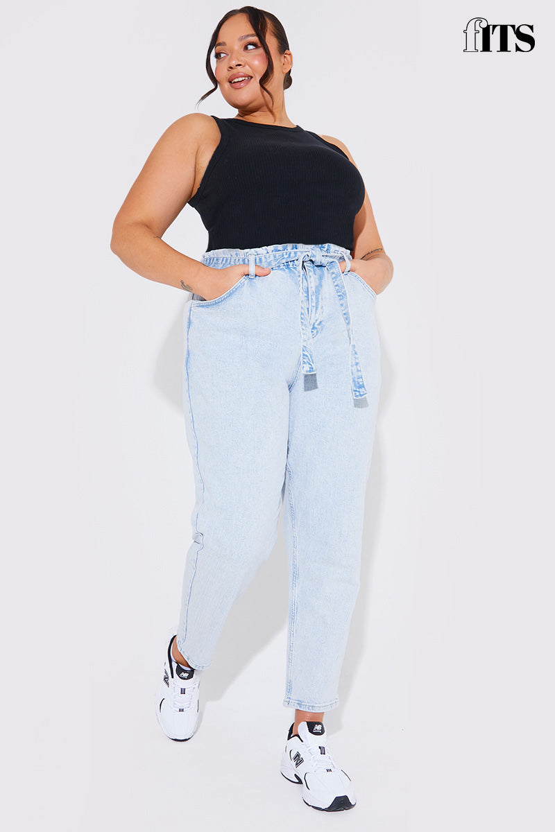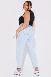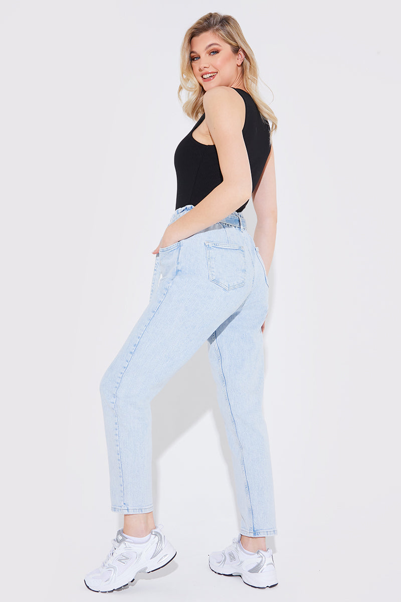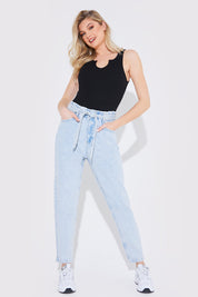 Light Wash Paperbag Tie Waist Jeans
