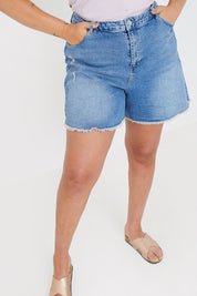Update your denim collection this season with these super cute denim shorts in a mid blue wash featuring a ripped finish. Team with a t shirt and trainers for a cute spring look.