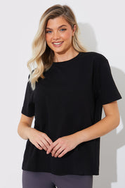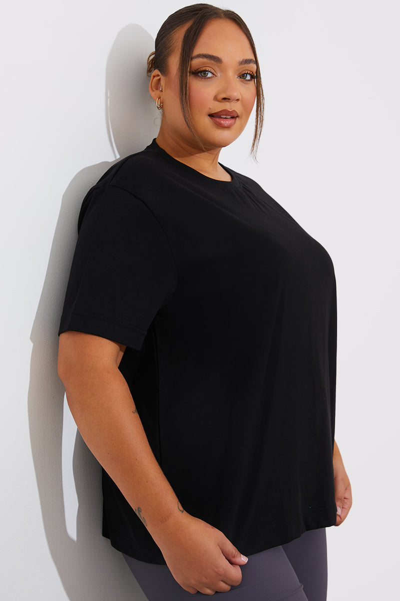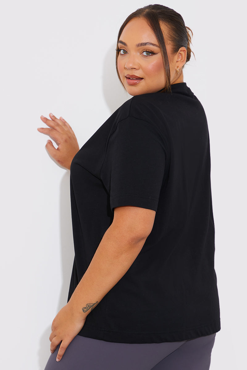 We are loving this black cotton tshirt with a crew neck, this is a perfect addition to your transitional wardrobe!