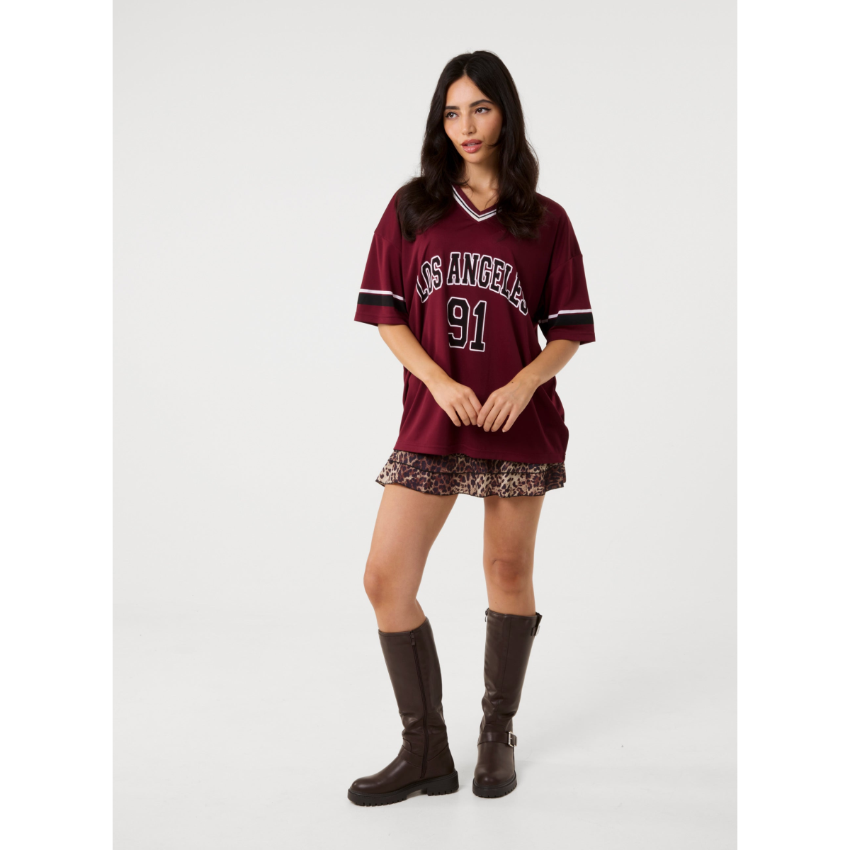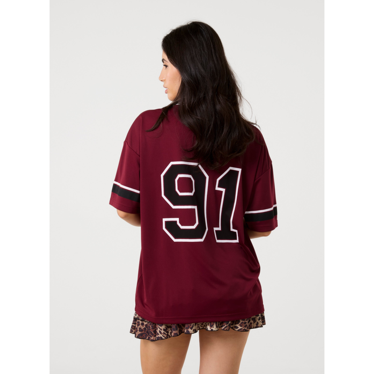 Football-core meets girly vibes. Inspired by old school jersey tops, this T-shirt features an oversized fit for endless styling options.