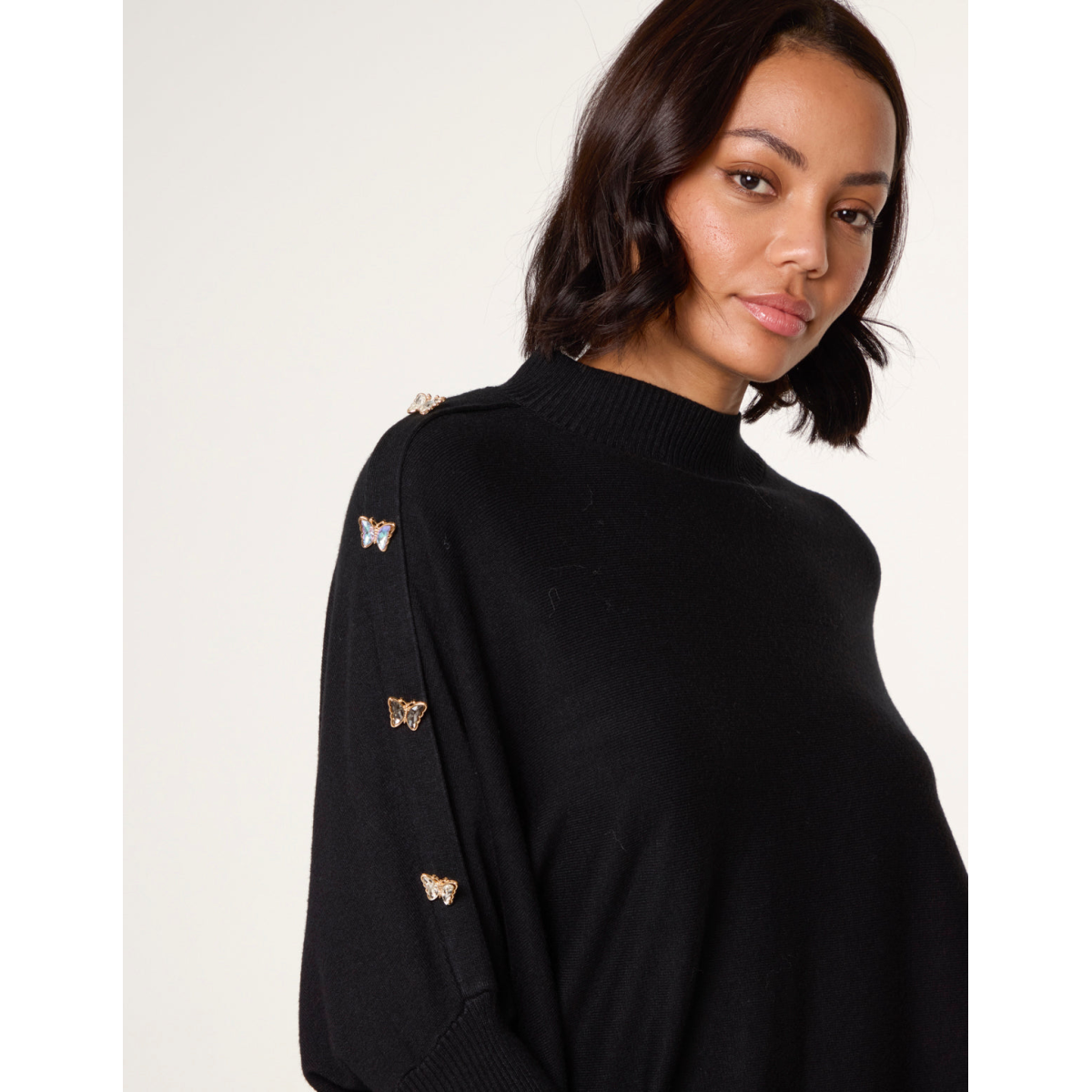 Add a fancy touch to your knitwear with this butterfly shoulder detailed jumper. Team with leggings for the perfect day to day wear.