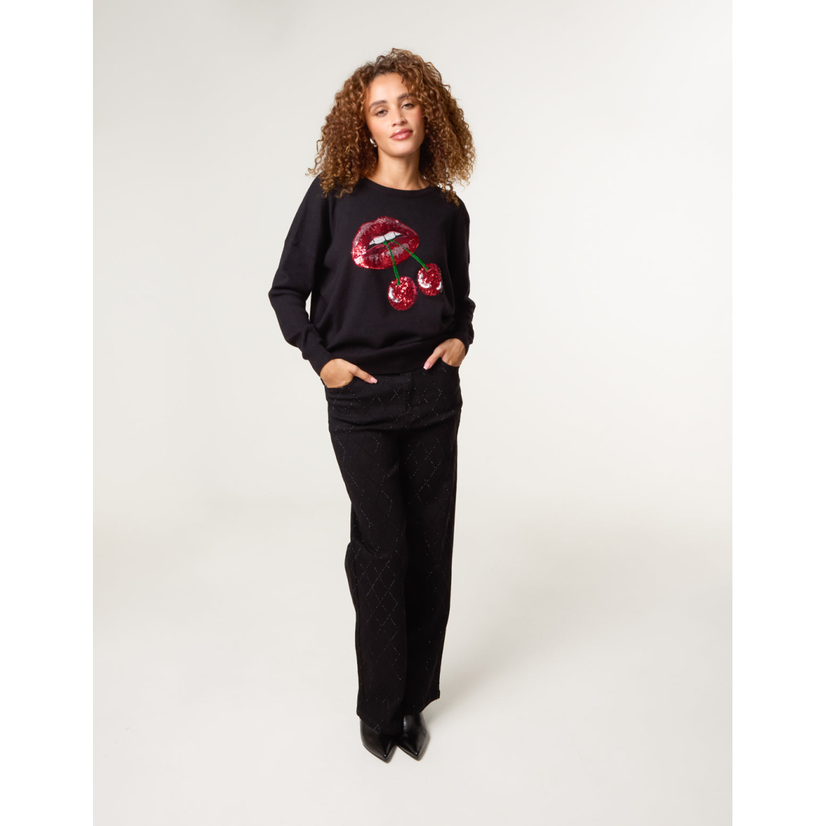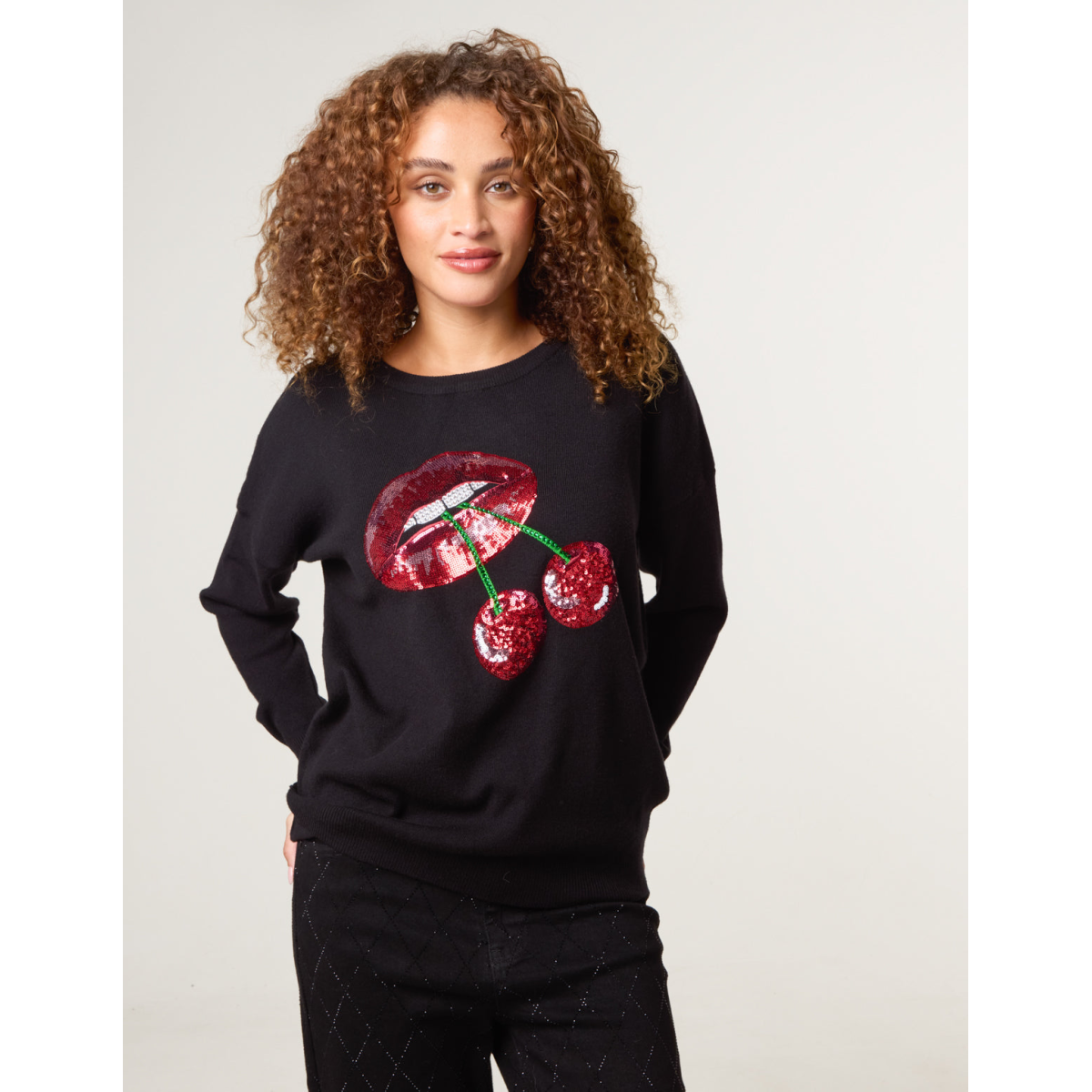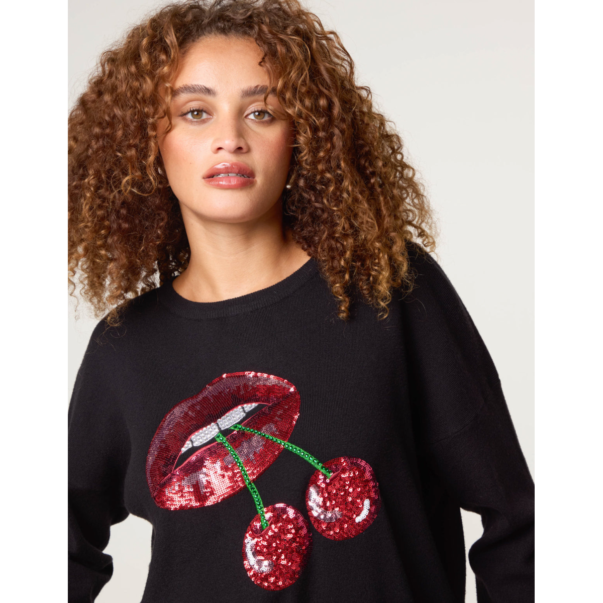 This comfy cherry jumper is shaped to relaxed proportions, it makes a great staple for your everyday wardrobe.