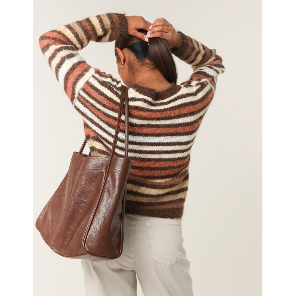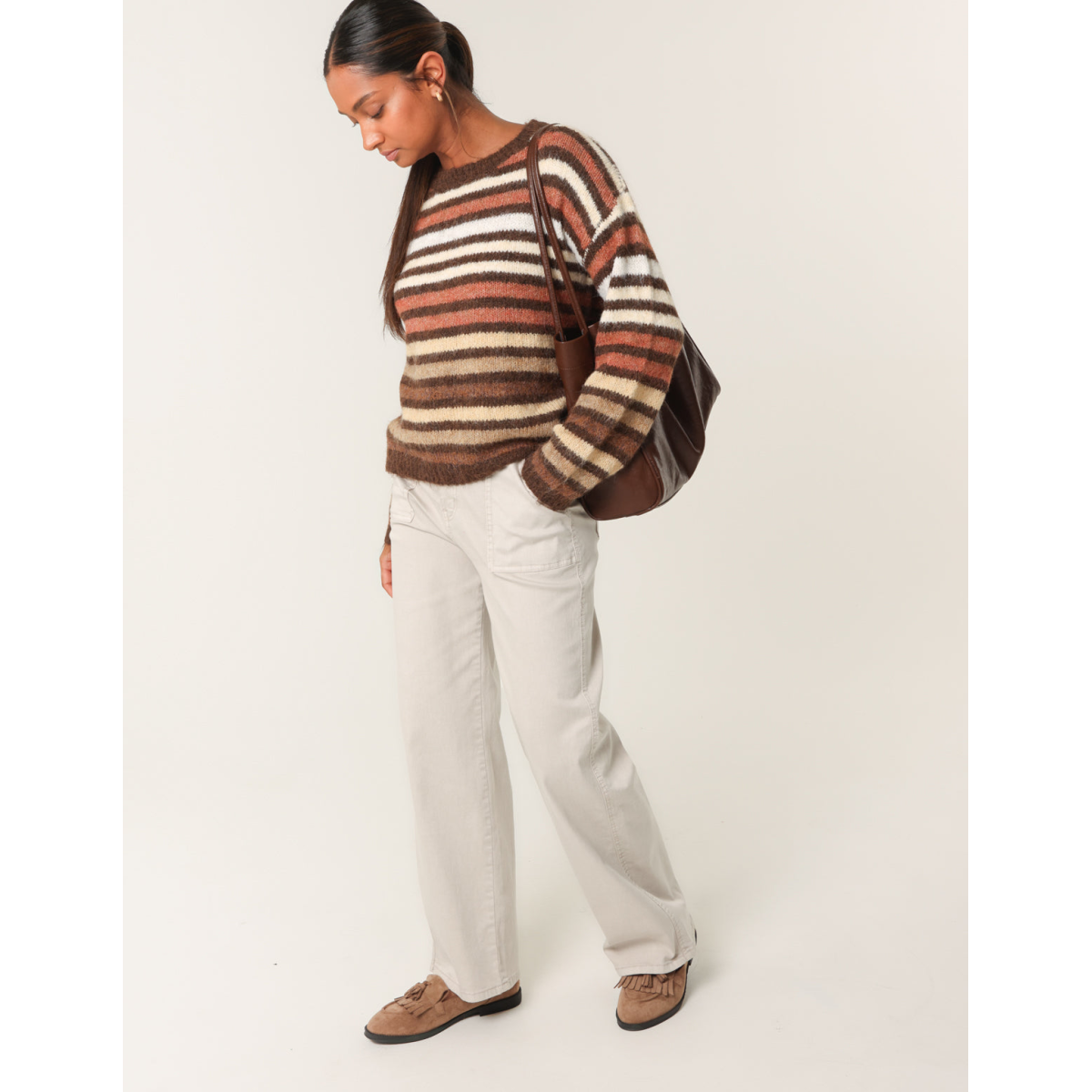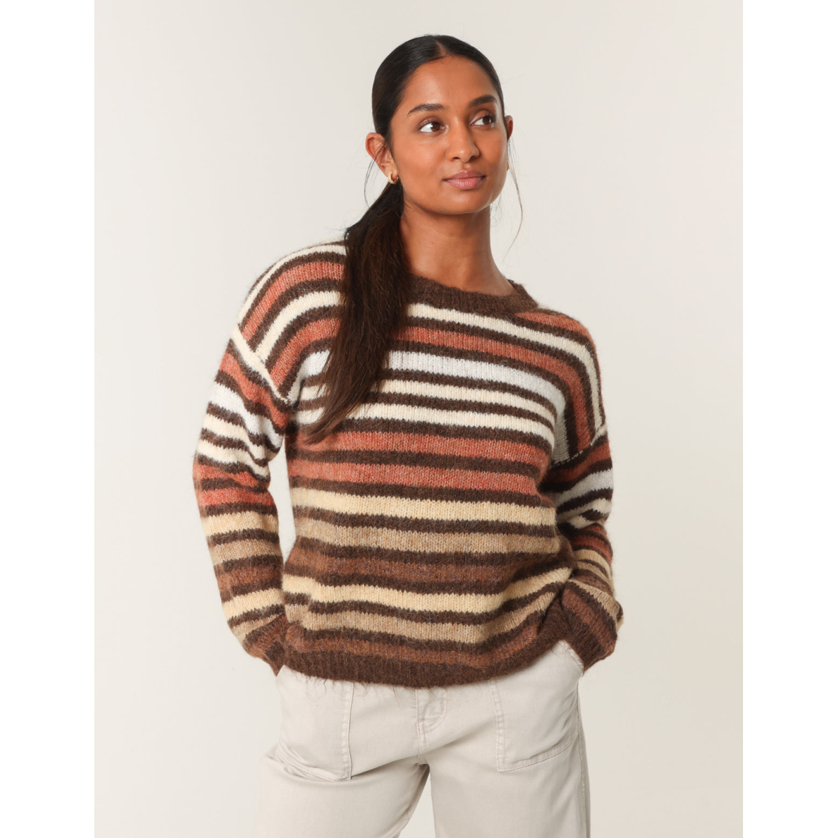 And a retro feel to our every day look. Team this block colour stripped jumper with flared jeans and chunky boots.