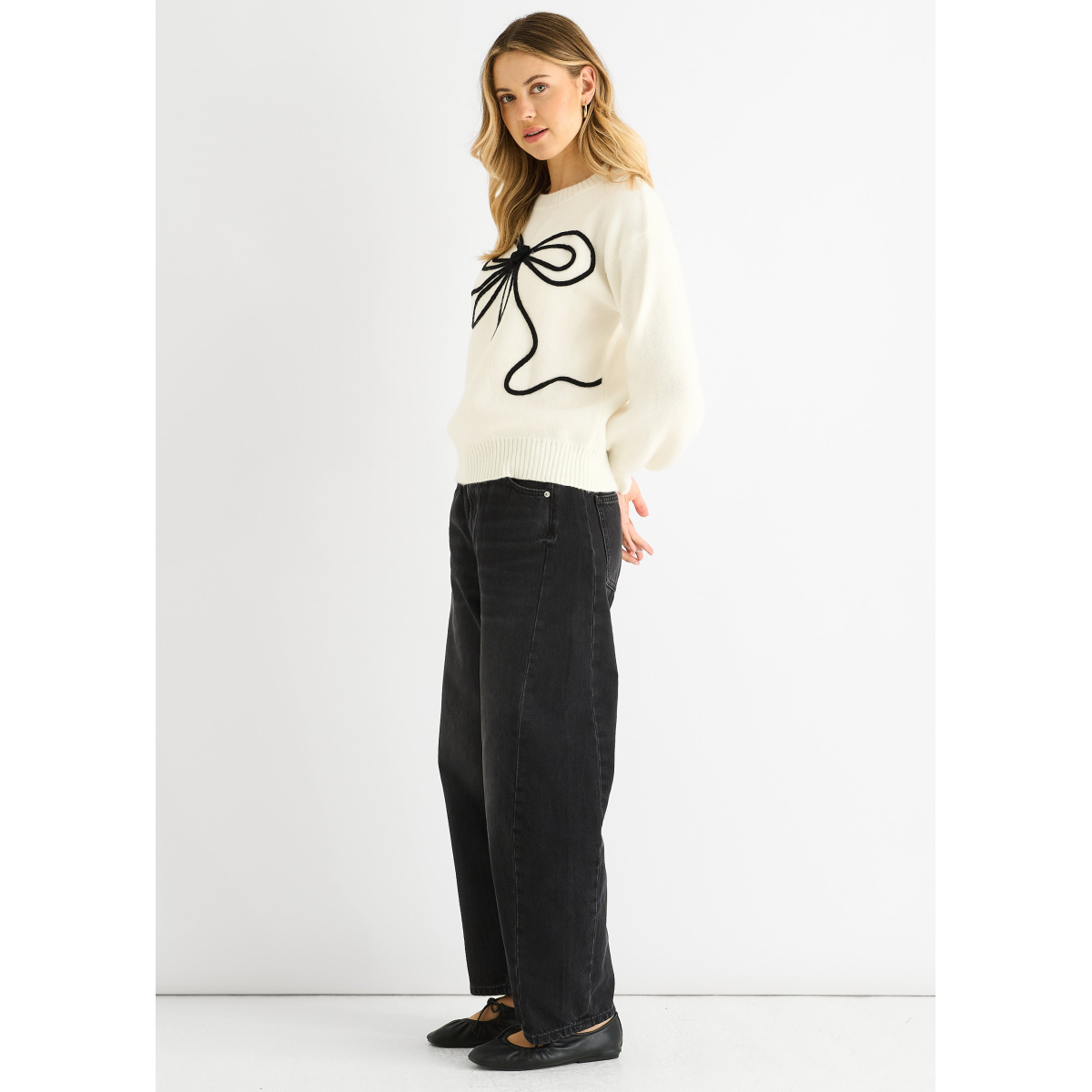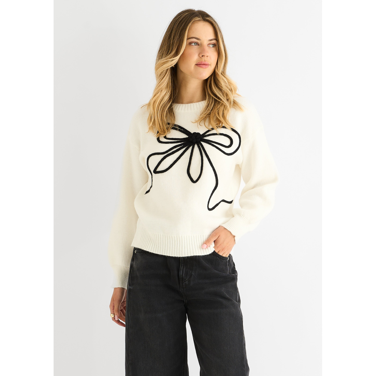 Stay cozy and stylish with our Cream Contrast Bow pattern oversized Jumper. This ultra-comfortable sweater features a unique bow pattern, adding a fun and playful touch to your outfit. Perfect for a casual day out, this jumper will keep you looking and feeling great.