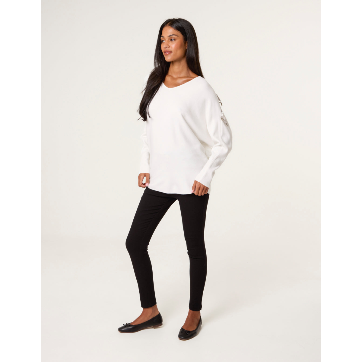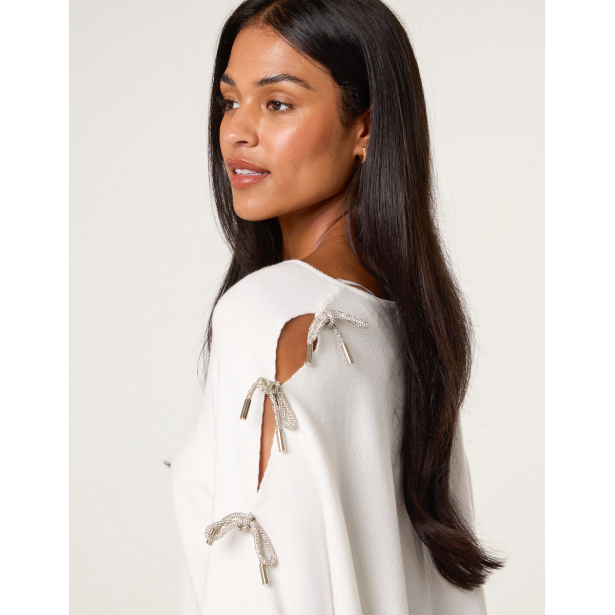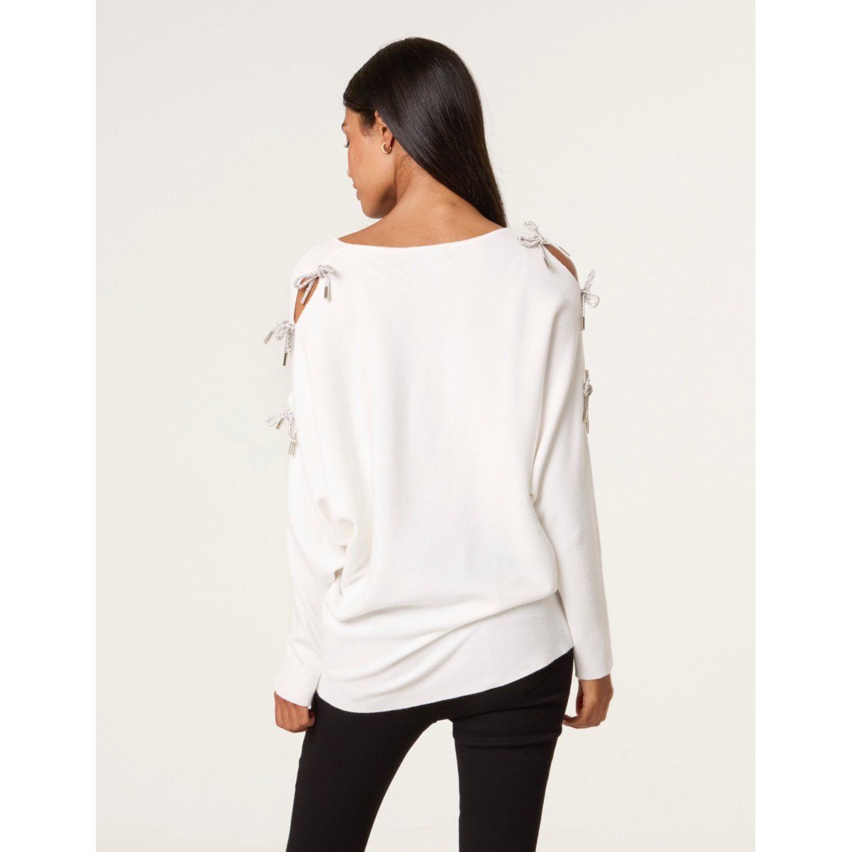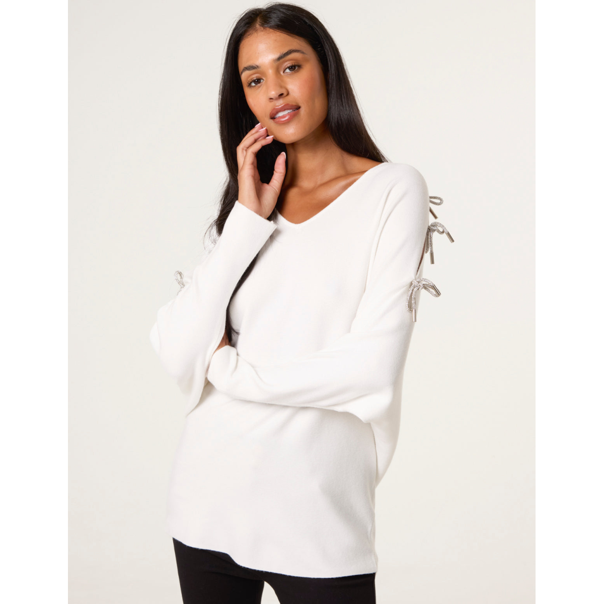 Add subtle sparkle to your everyday occasions with this diamante bow detailed sleeve jumper.