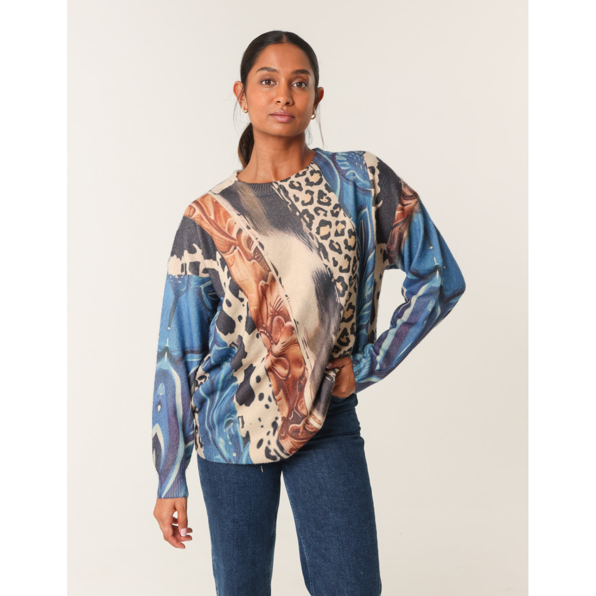 Take a walk on the wild side when wearing this multi animal print jumper. Dress this soft touch jumper up or down this season, and feel super comfy each and every time.