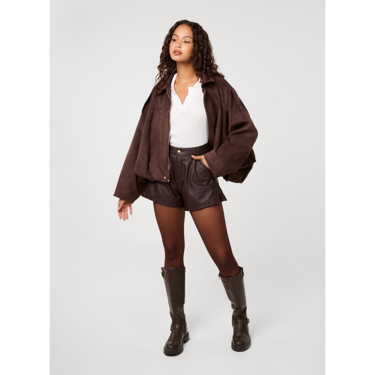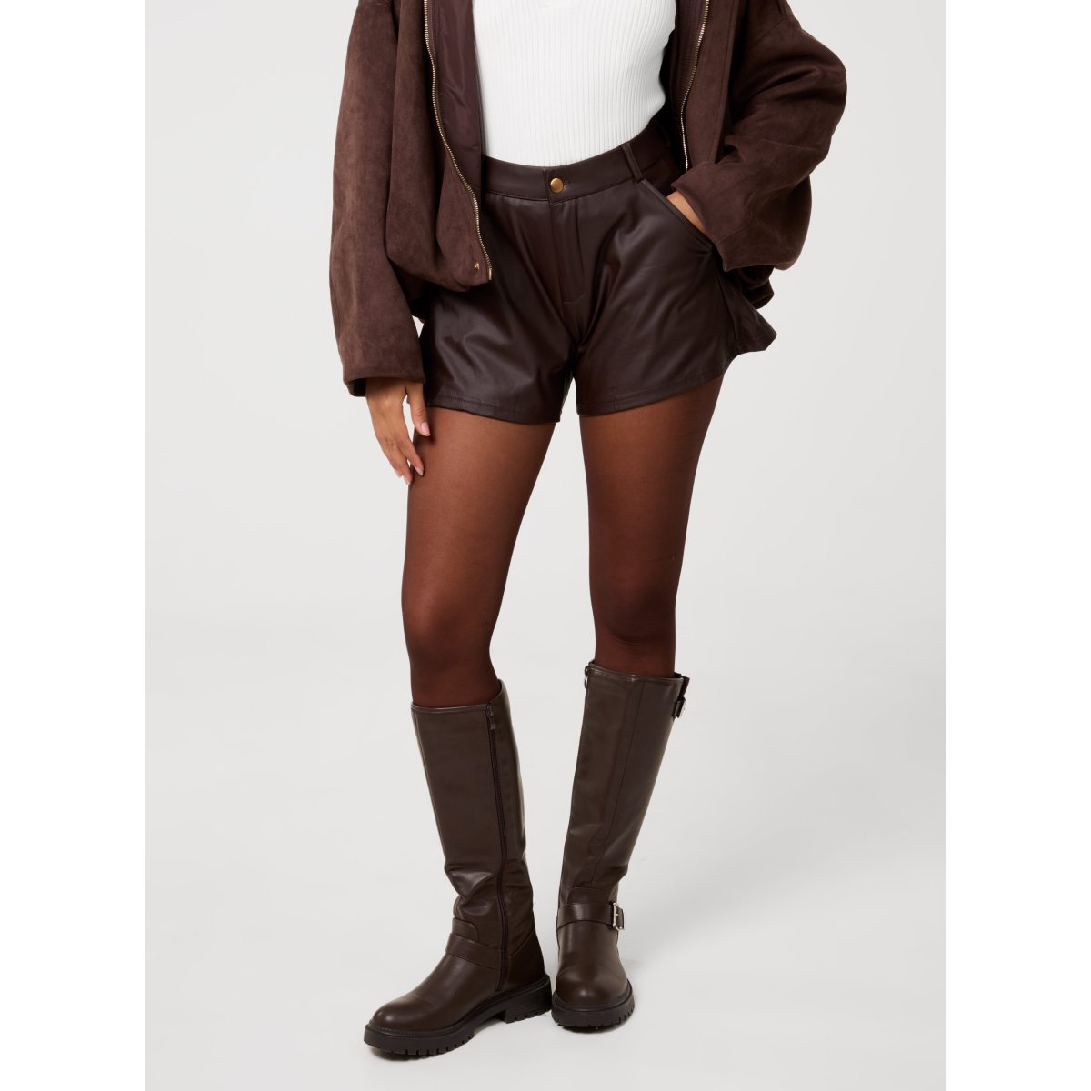 Grab your essentials for the winter at Pink Vanilla. Our PU Shorts are perfect for any occasion. Pair them with black tights and knee high boots for a fun date night whilst being comfy!