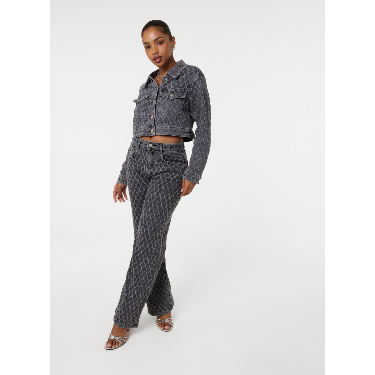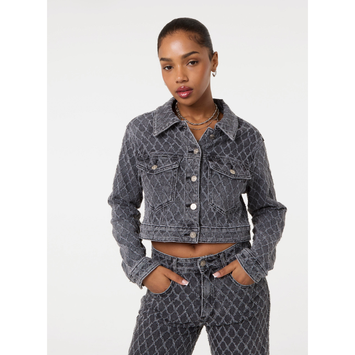 Add an edgy vibe to your jean on jean fit. Pair this Textured Denim Jacket with their matching Textured Denim Jeans and break all the basic rules.