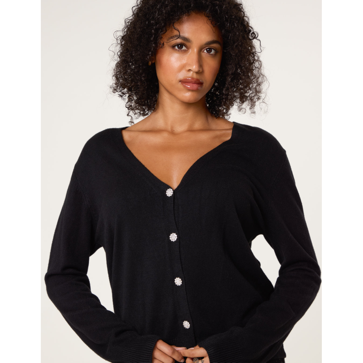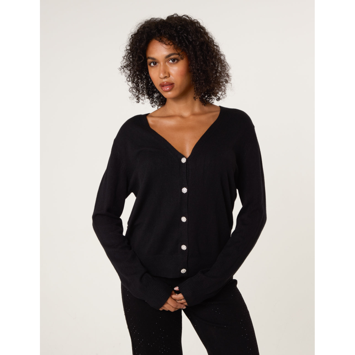 A cute and cosy cardi for those colder days this season. A perfect layering piece for the office. With its diamante detailed buttons giving a touch of glam.