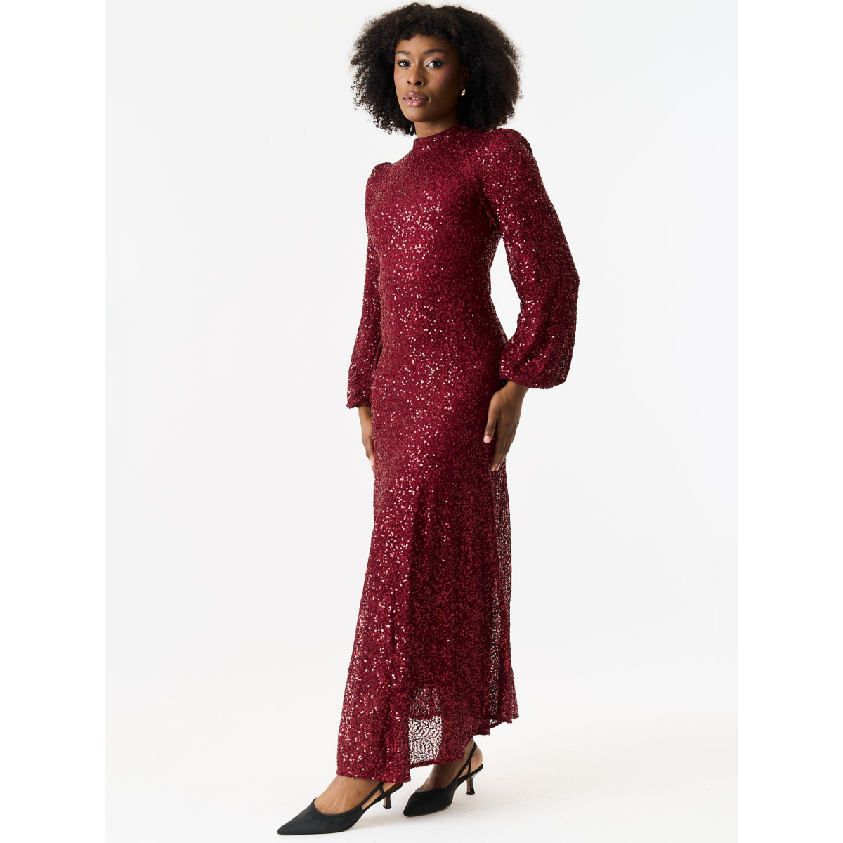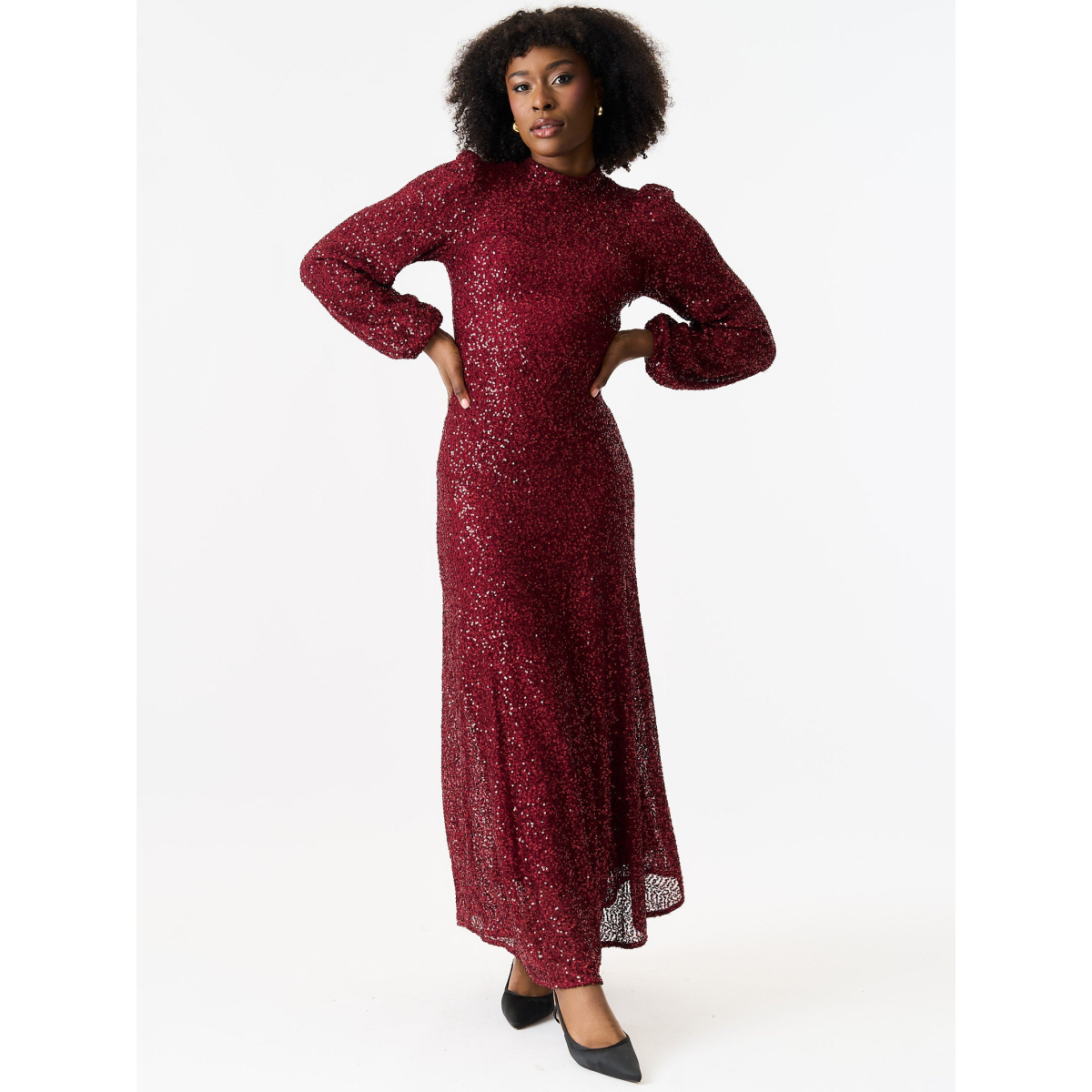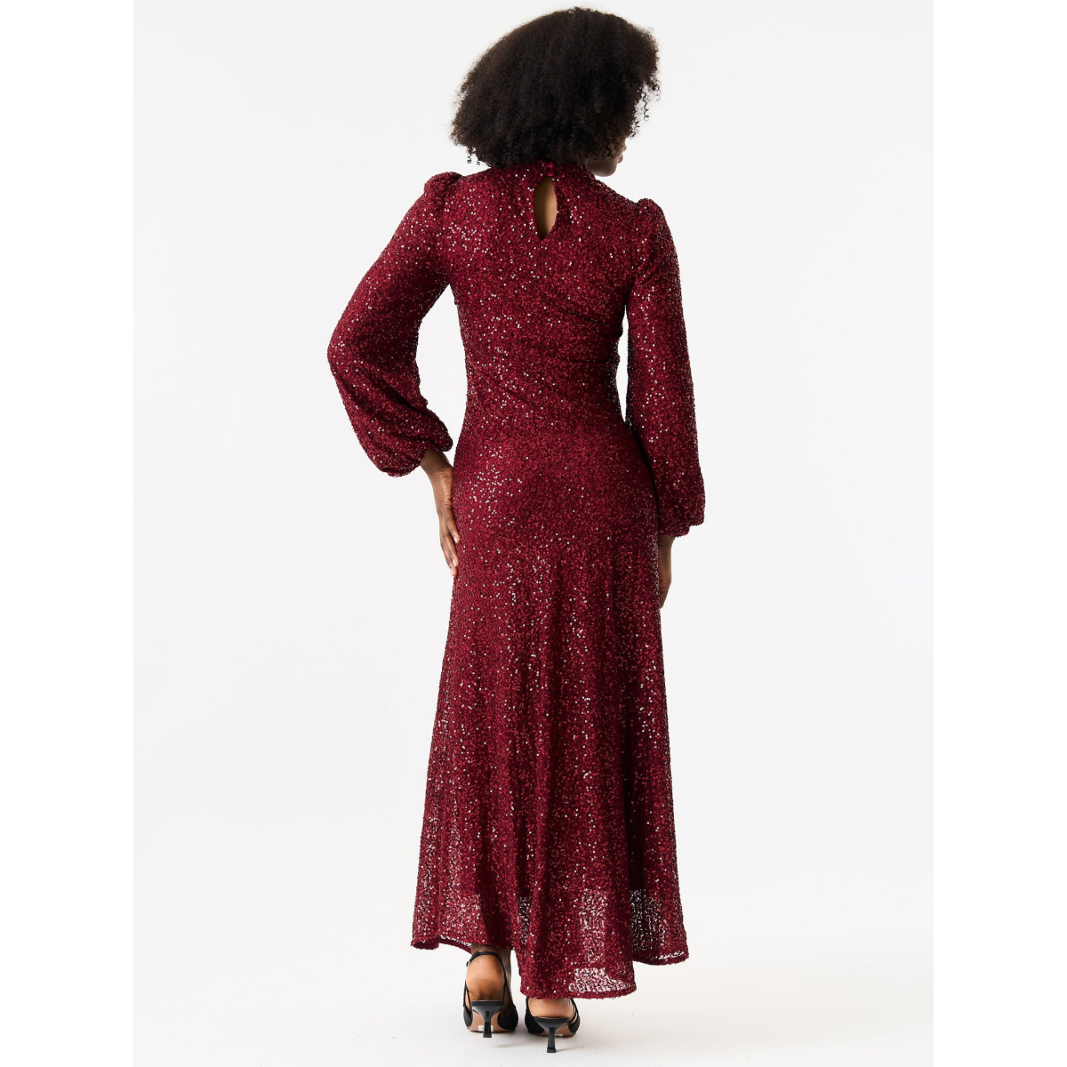 Elevate your fashion game with our stunning Burgundy Sequin High Neck Occasion Midi Dress. The rich burgundy hue and sparkling sequins will make you stand out at any event. The high neck design adds elegance, while the midi length offers versatility. Be the star of the show in this must-have dress.