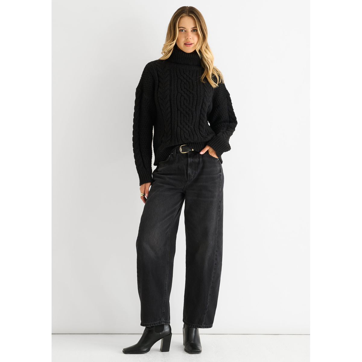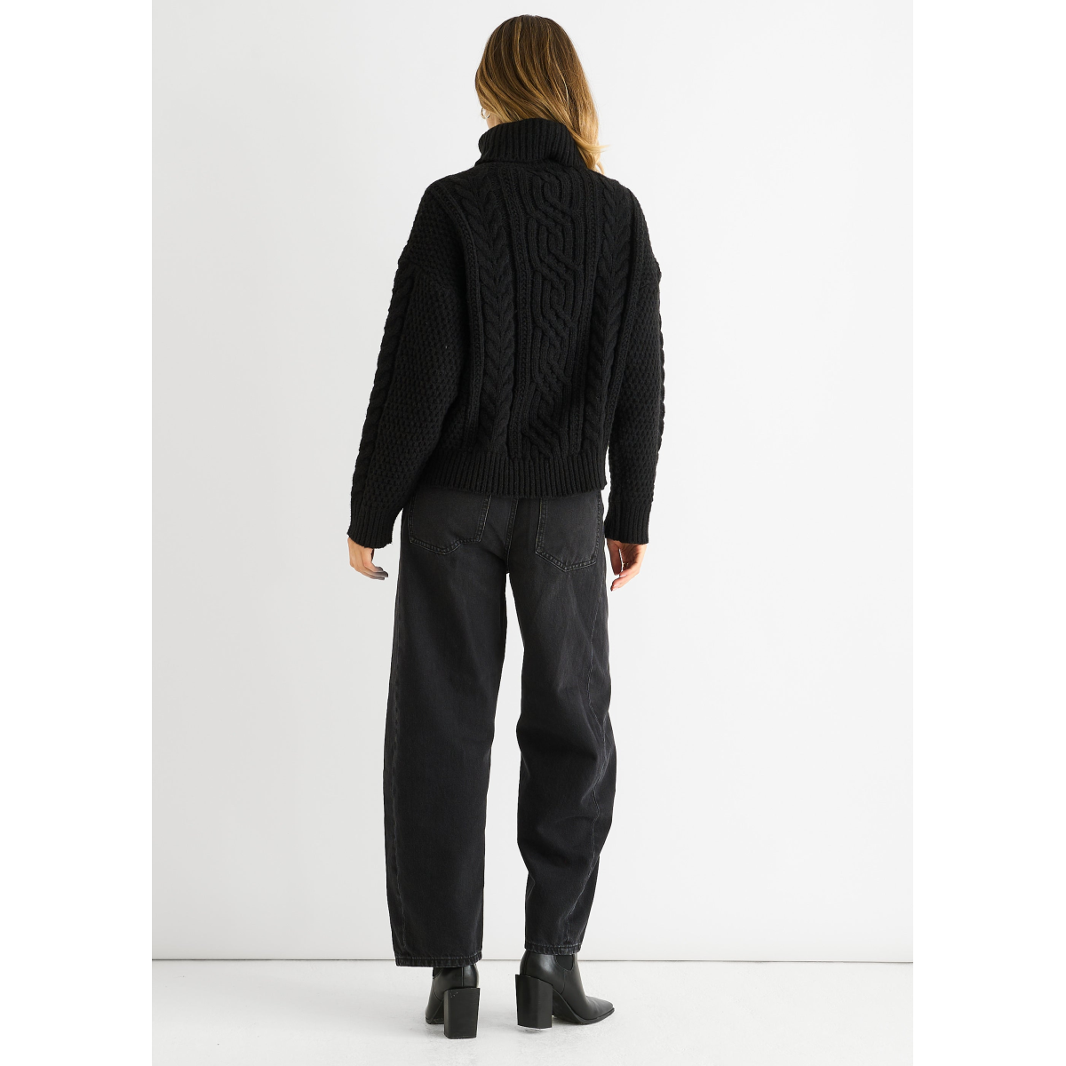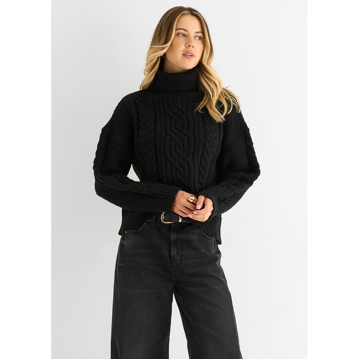 Black Cable Knit High Neck Knit Jumper