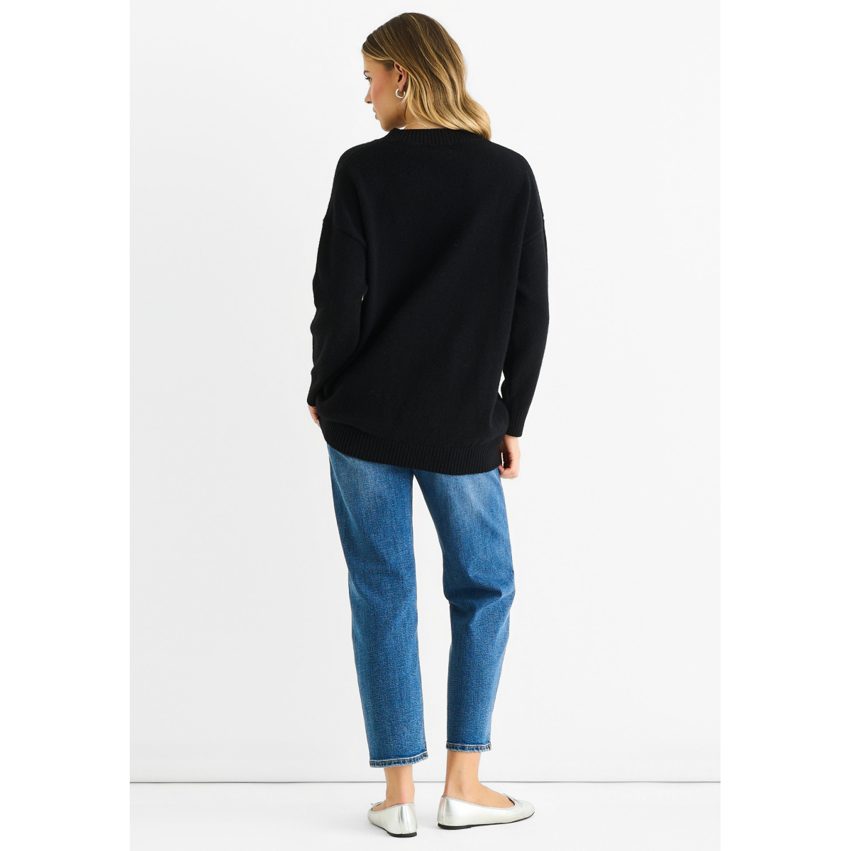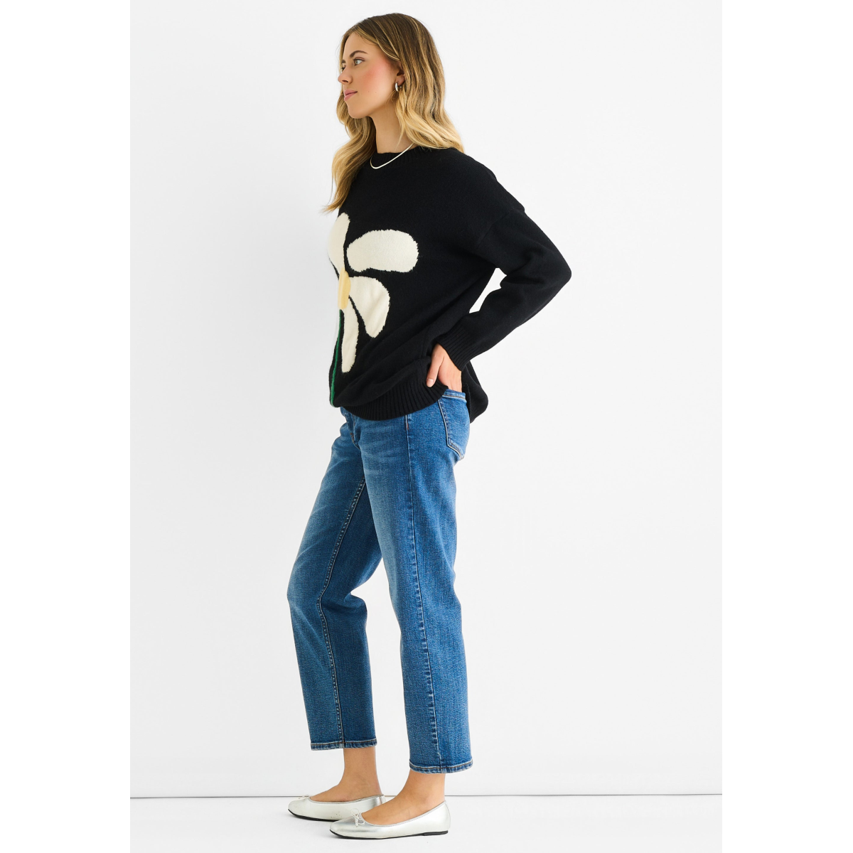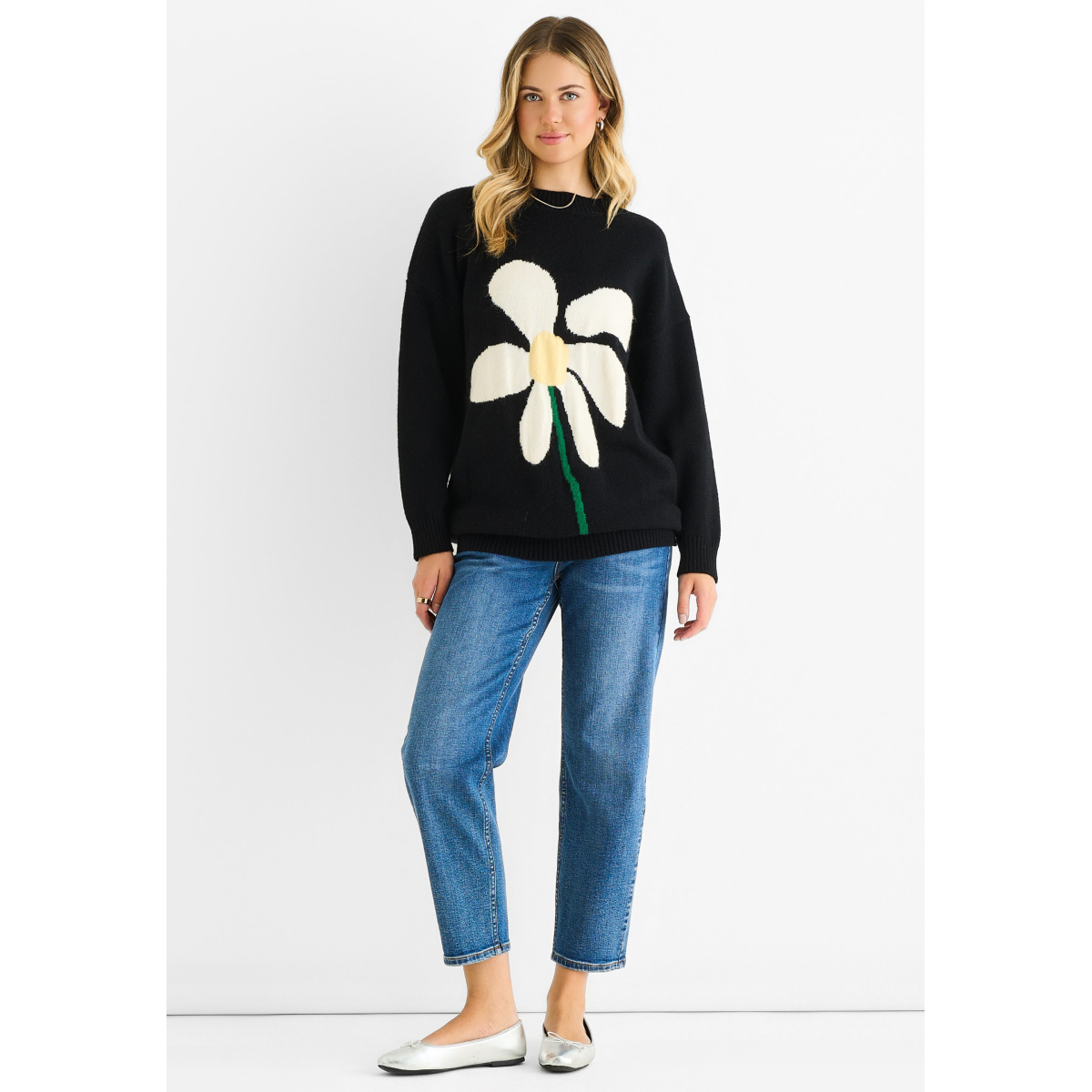Stay stylish and comfortable with our Black Paint Flower Knit Oversized Long Jumper. Made with premium materials, this jumper is perfect for any casual occasion. Its eye-catching black paint flower design adds a touch of elegance to your outfit. Stay warm and on-trend with this must-have piece.
