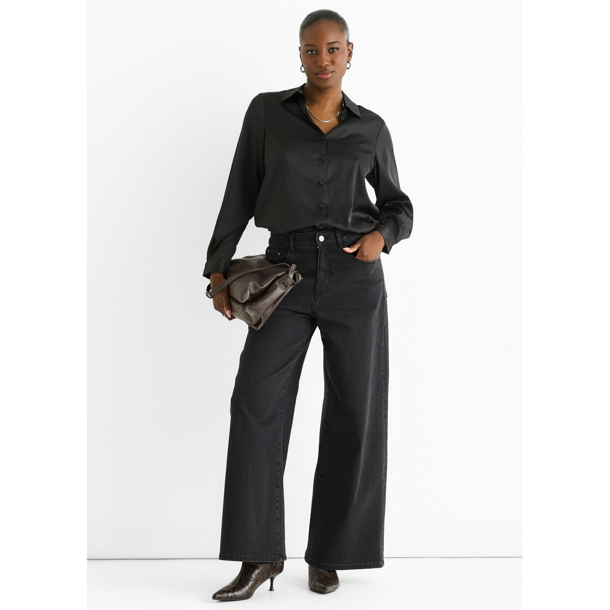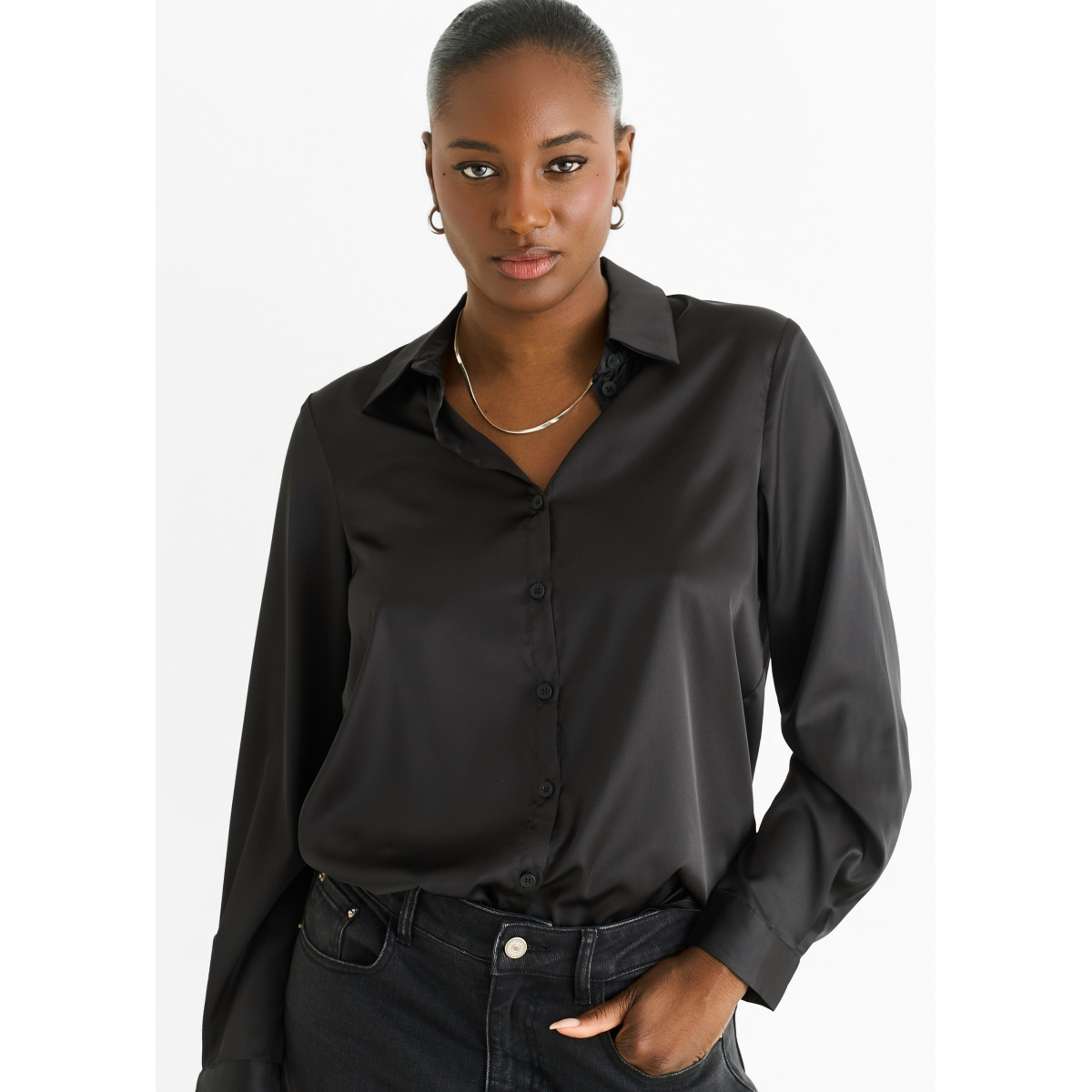 Elevate your everyday style with this Black Satin Loose Fit Button Through Shirt. Crafted from smooth satin fabric, it offers a relaxed, comfortable fit that moves with you. The button-through design adds a classic touch, while the bold black hue makes it a versatile piece for casual outings or laid-back evenings.
