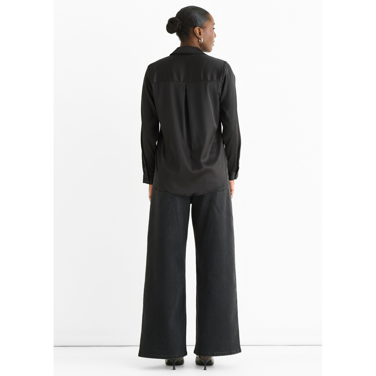 Black Satin Loose Fit Button Through Shirt