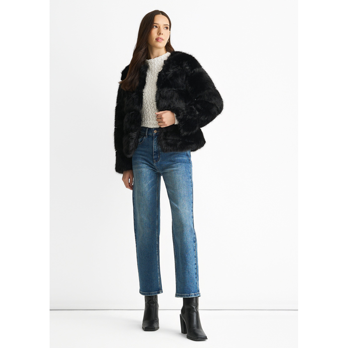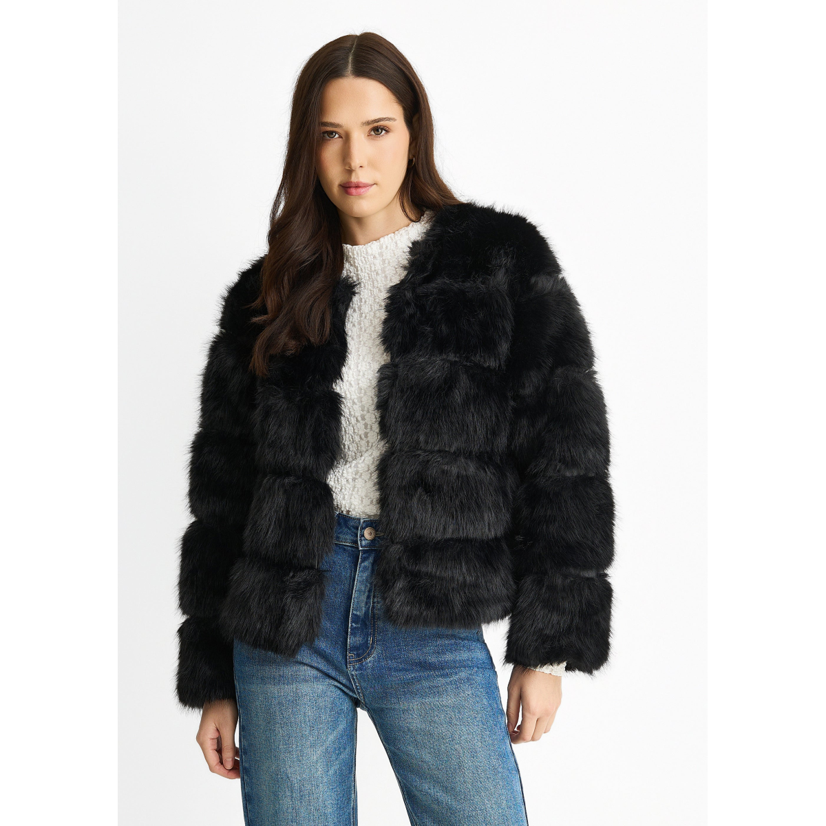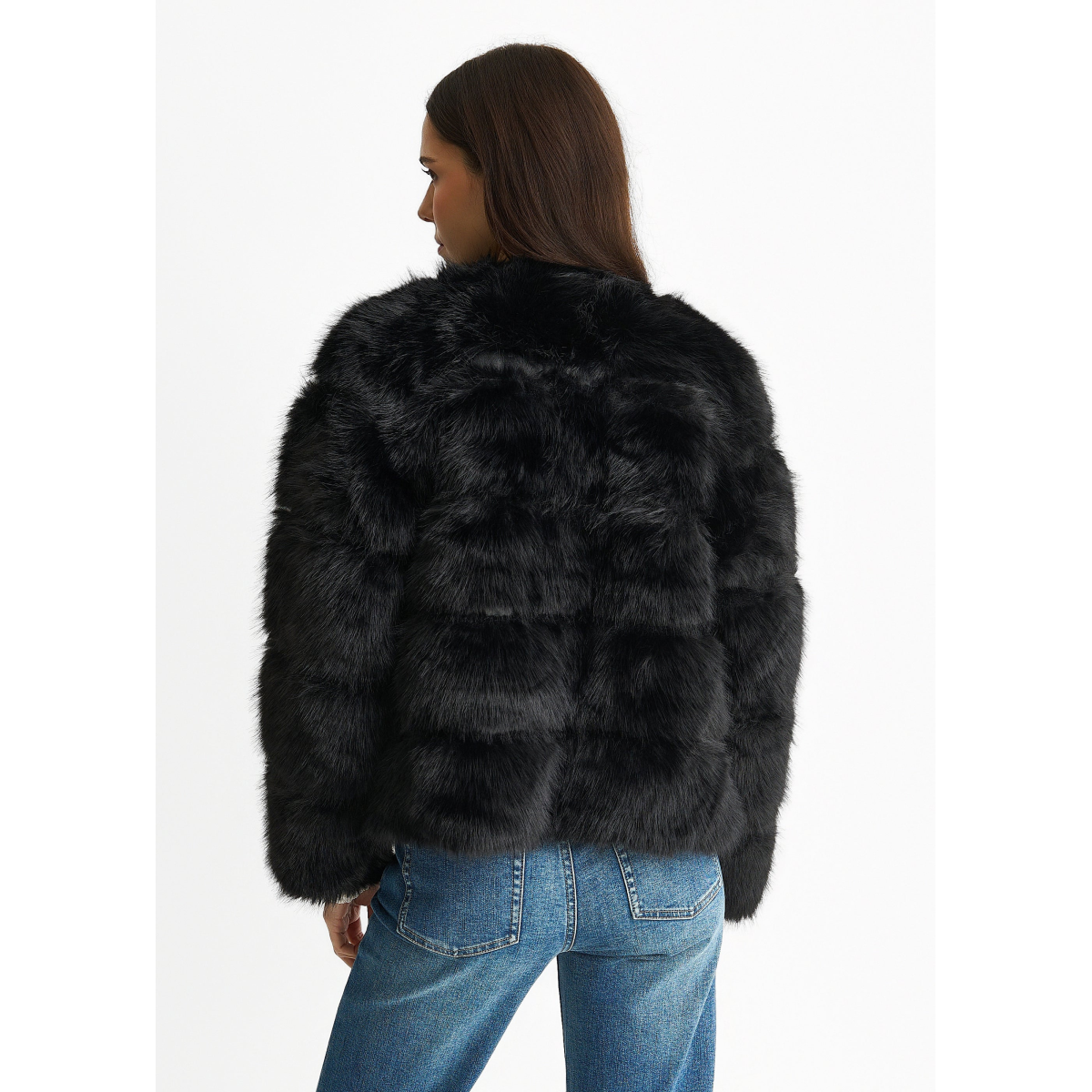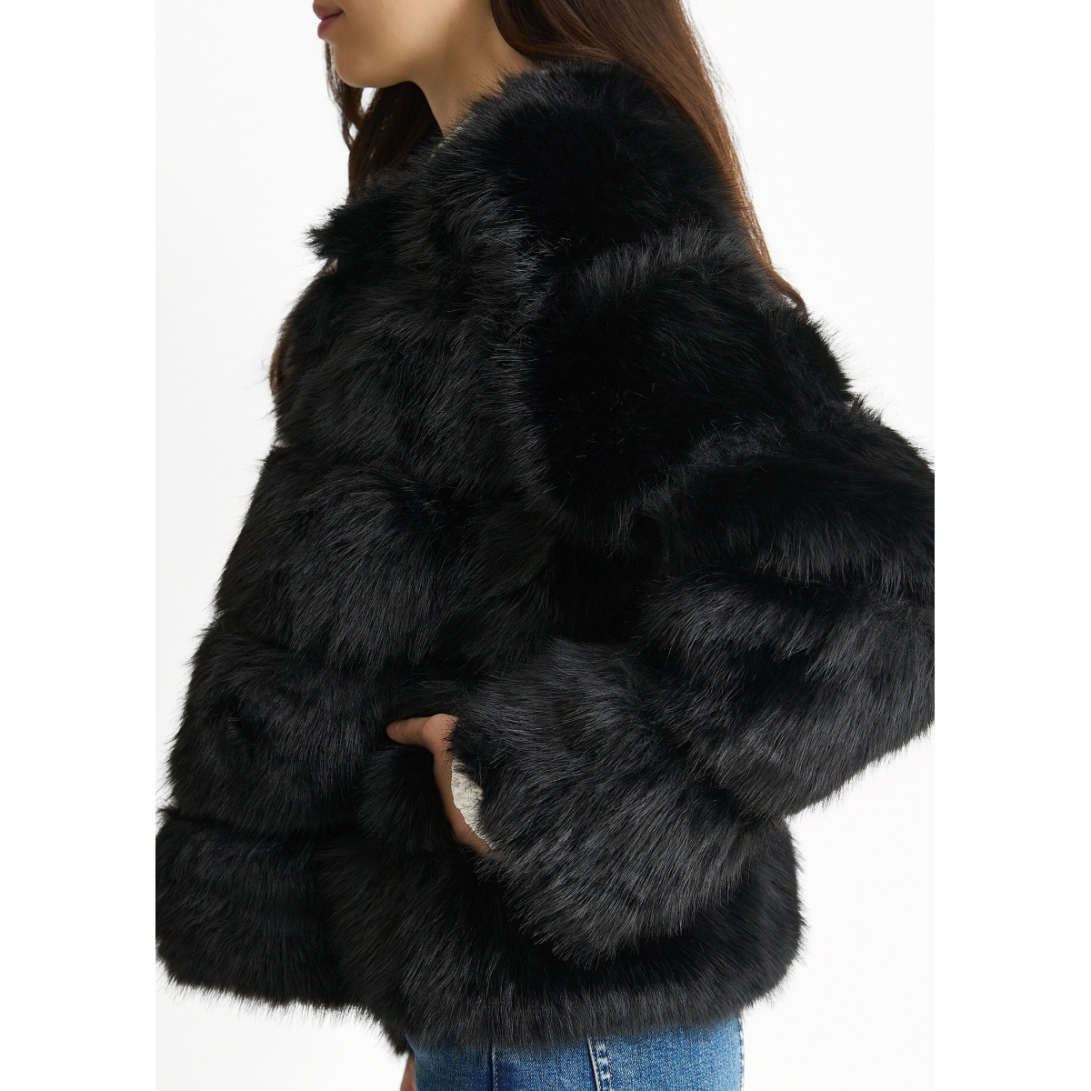Stay warm and look stylish with this luxe black jacket. Crafted from soft touch fabric and faux fur for a chic and cosy look.