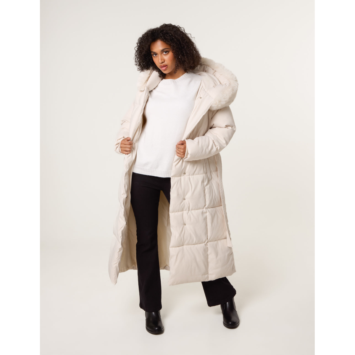 Enjoy warmth and style with this longline puffer coat throughout those colder days. This jacket is super versatile and the perfect through on for day to day life.