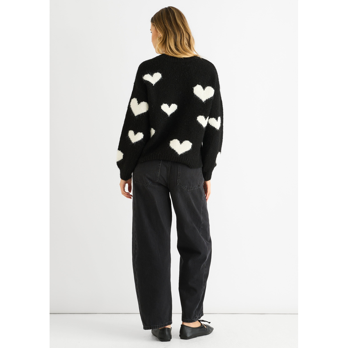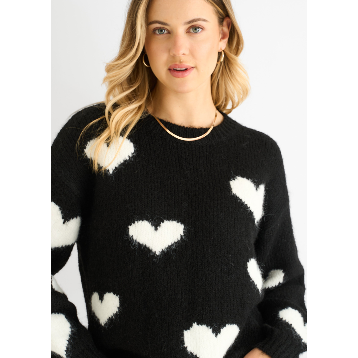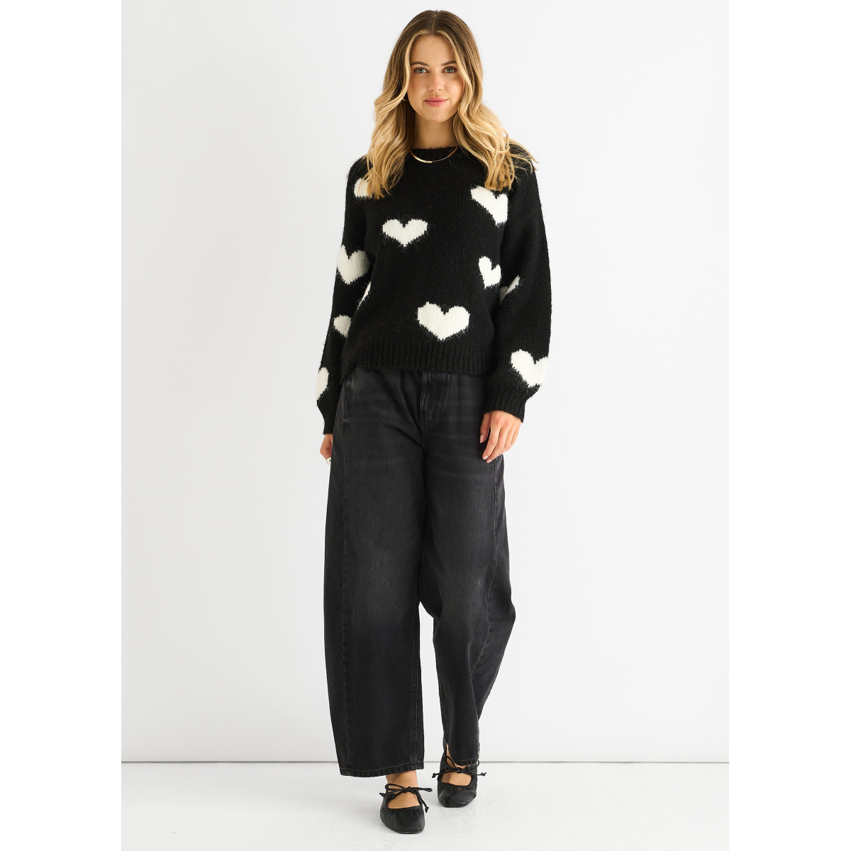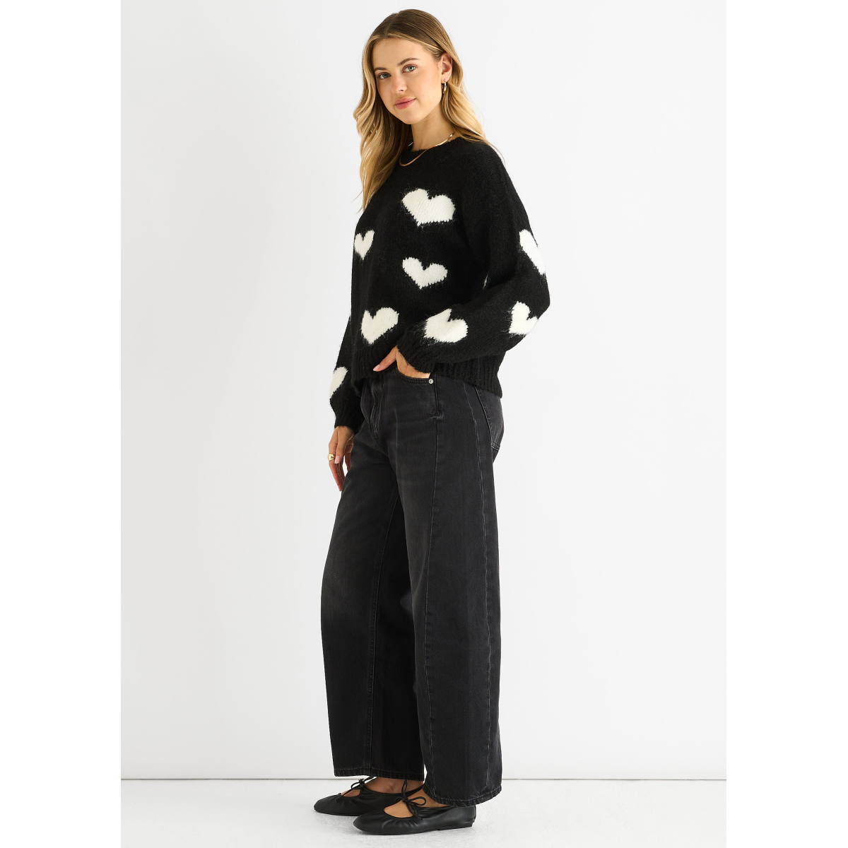 Stay cozy and stylish with our Black Contrast Heart Oversized Knit Jumper. The bold contrast heart adds a touch of playfulness to this casual and comfortable oversized jumper. Perfect for a relaxed yet chic look.
