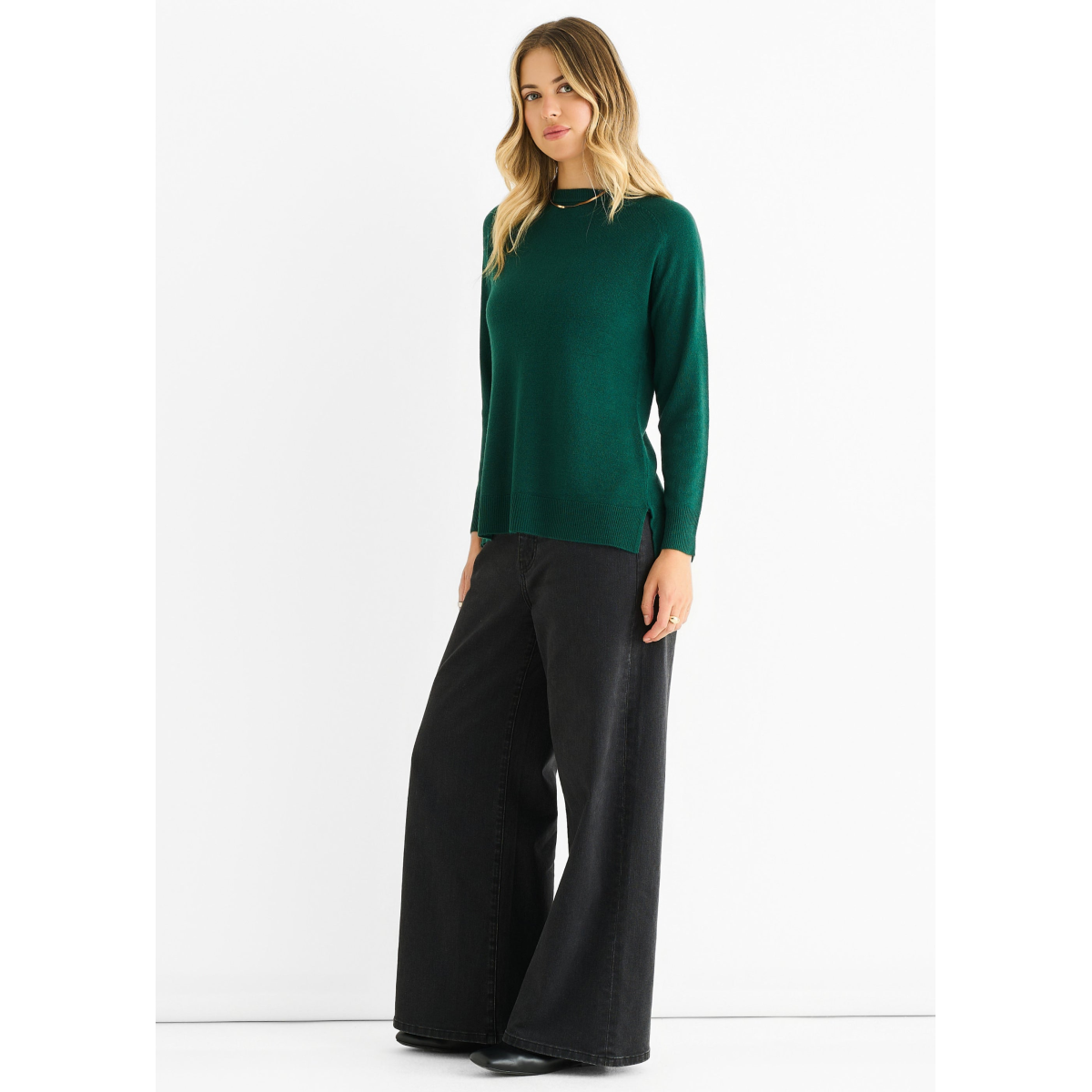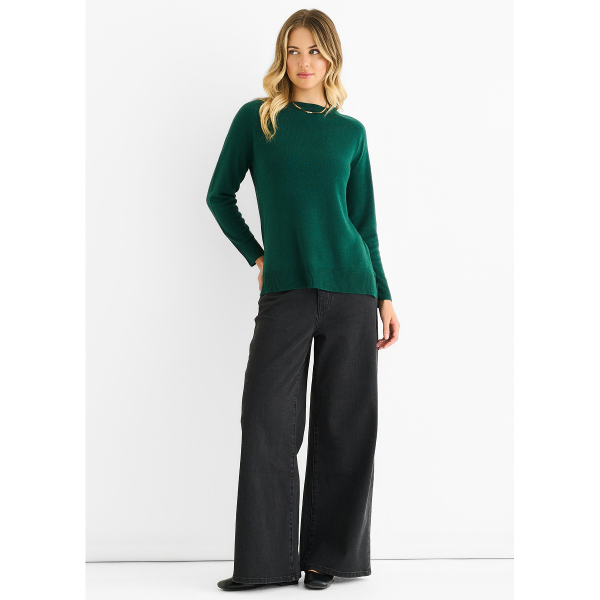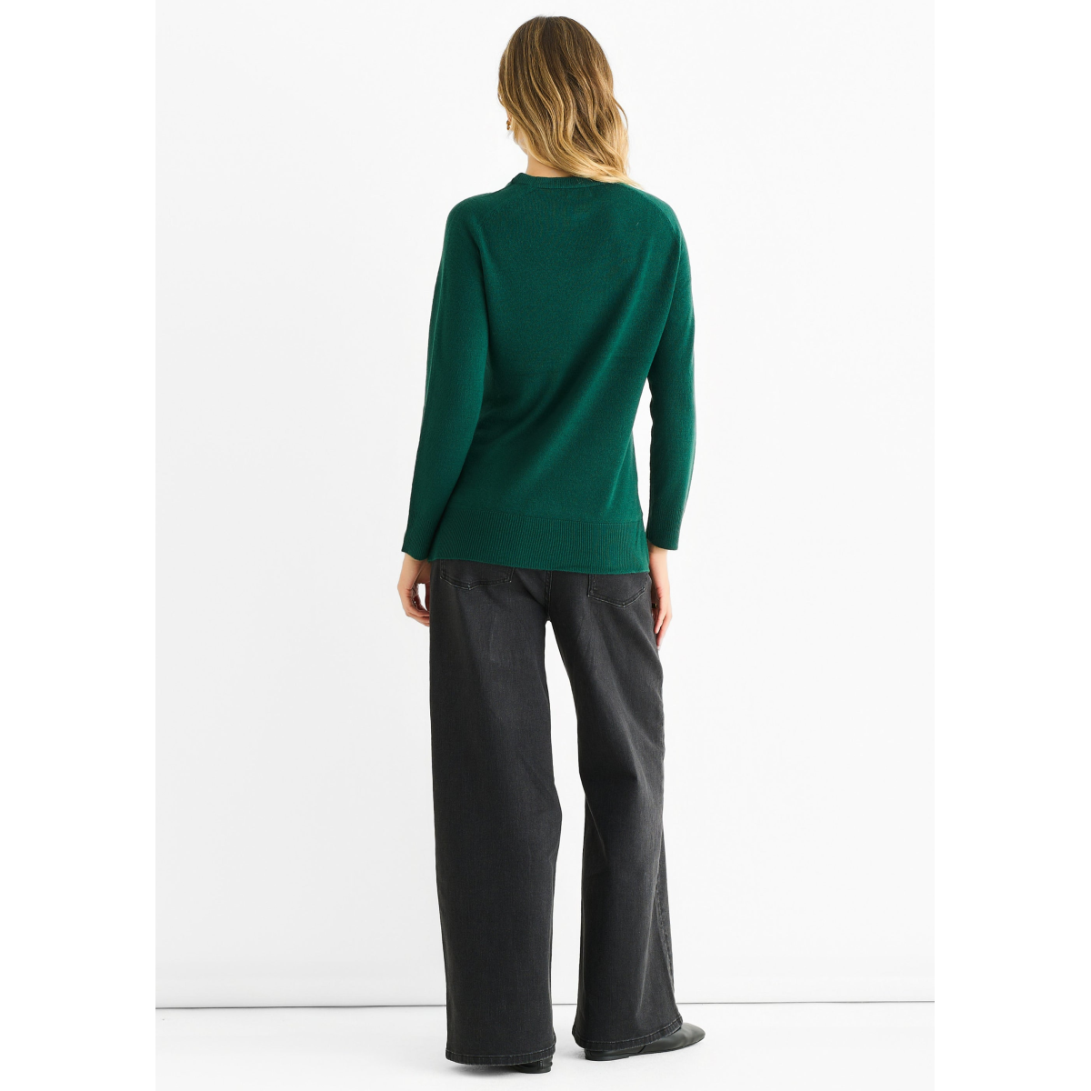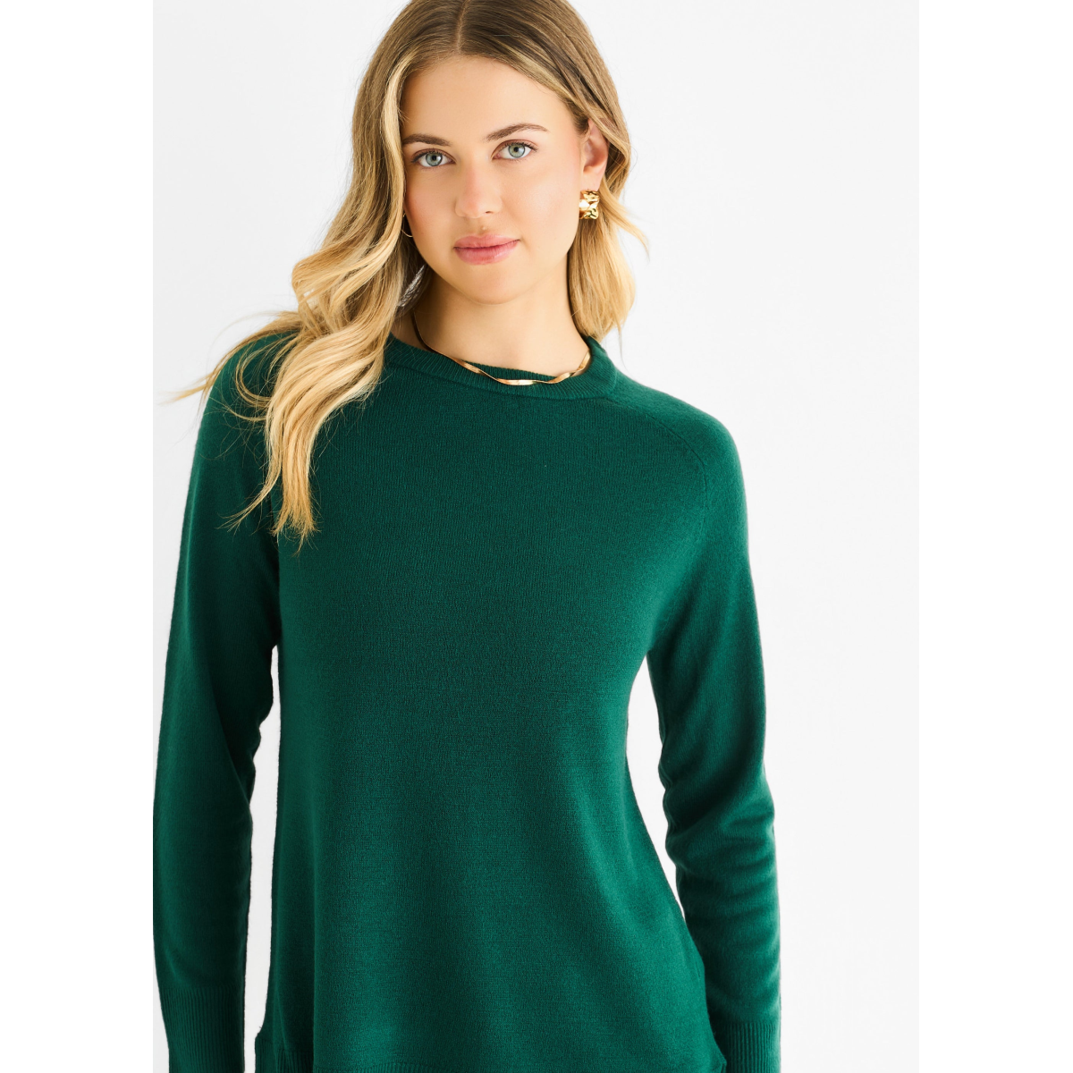 Green Crew Neck Fine Knit Oversized Jumper