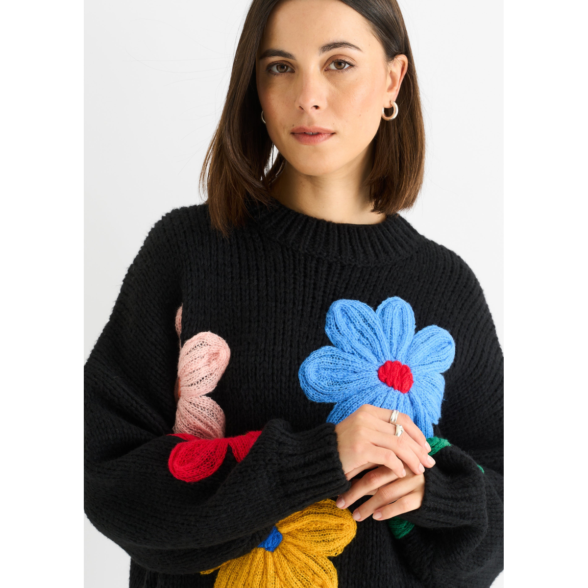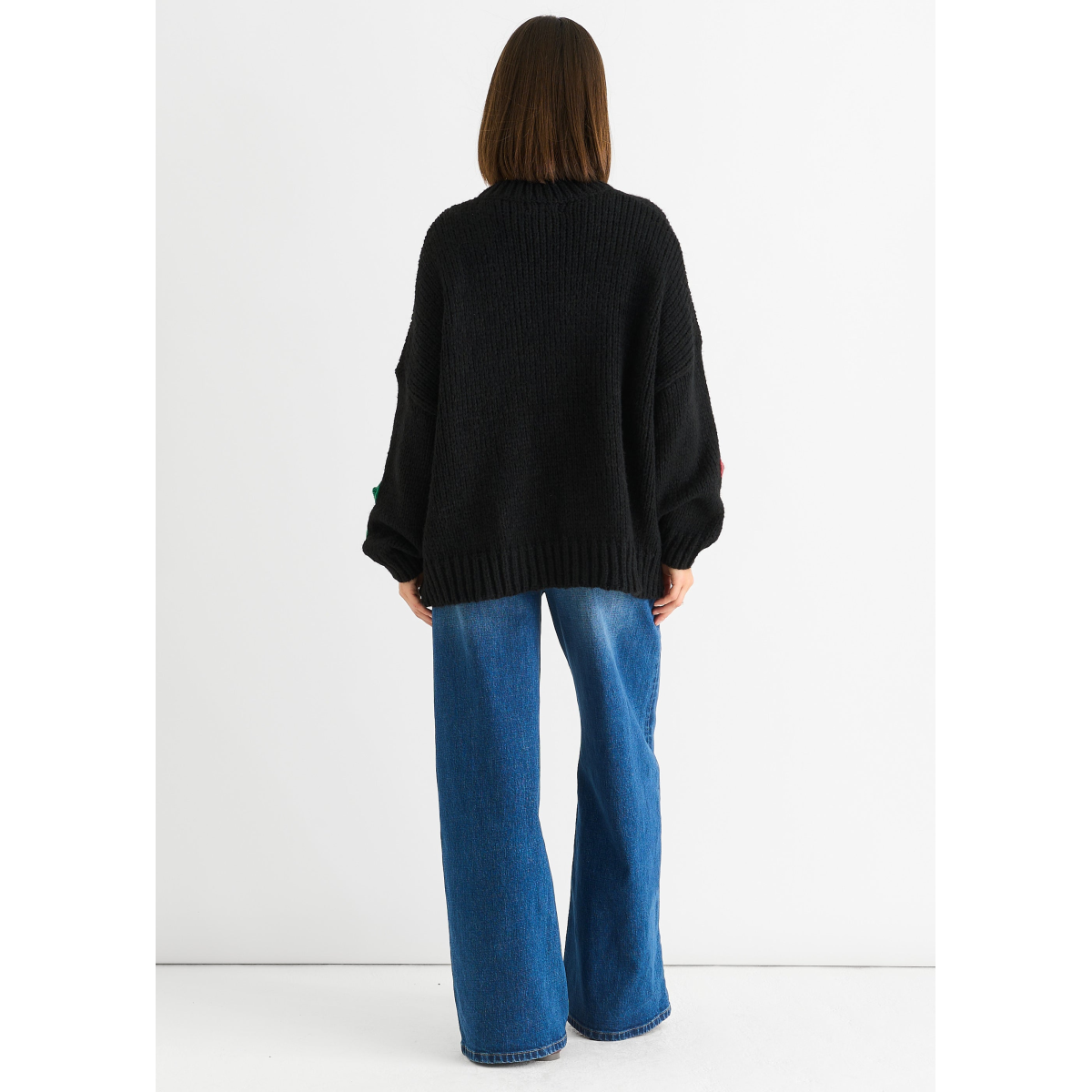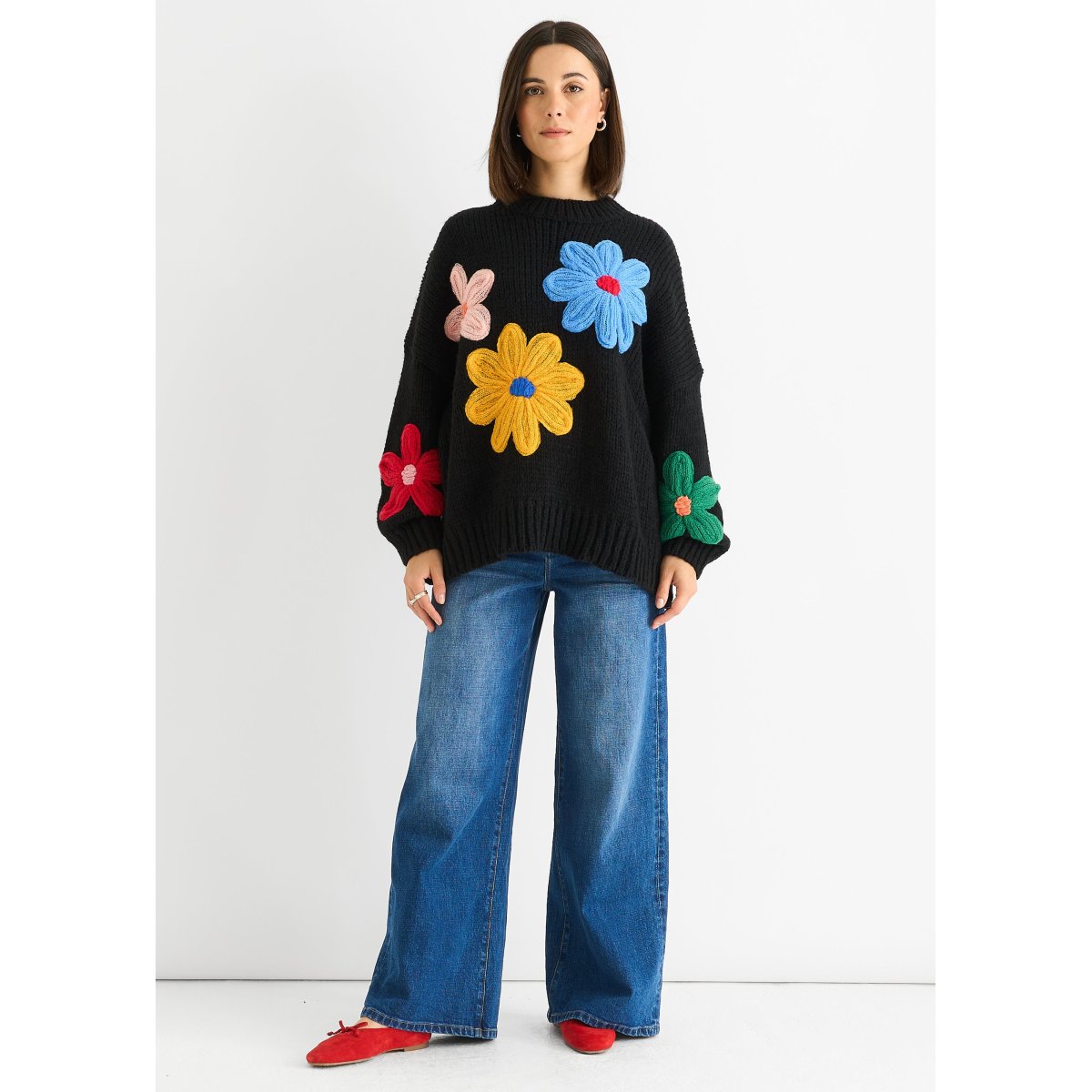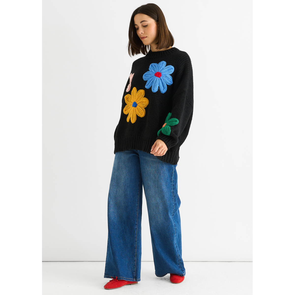 Black Floral Crochet Chunky Knit Oversized Jumper