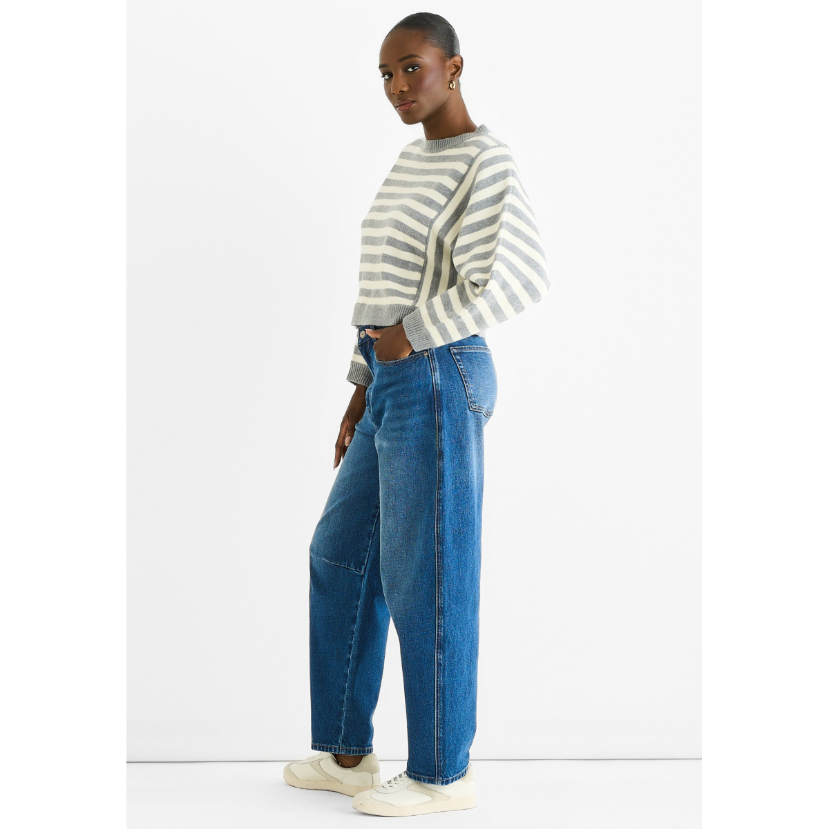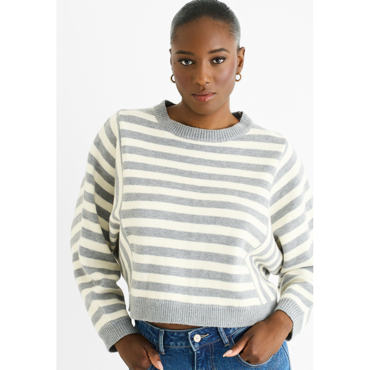Grey Recycle Contrast Stripe Loose Fit Knit Jumper