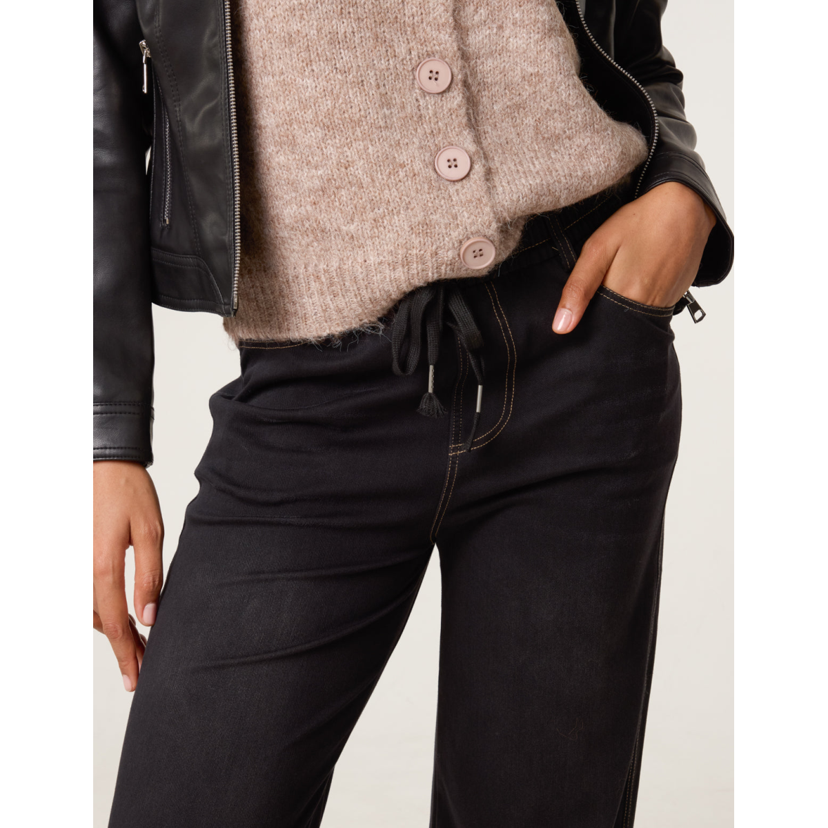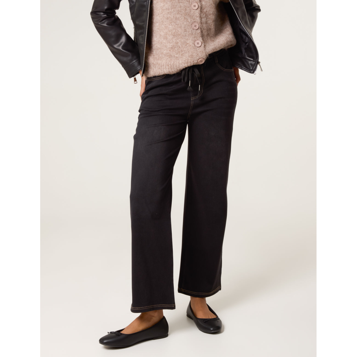 Elasticated Waist Jeans With Tie