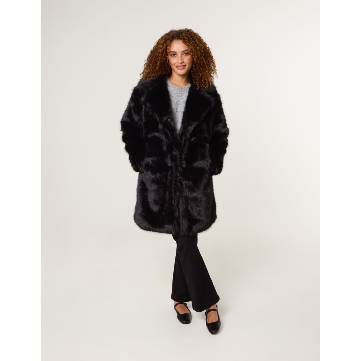 Add a textured touch to your wardrobe this season with our luxe faux fur coat, perfectly completing evening outfits.