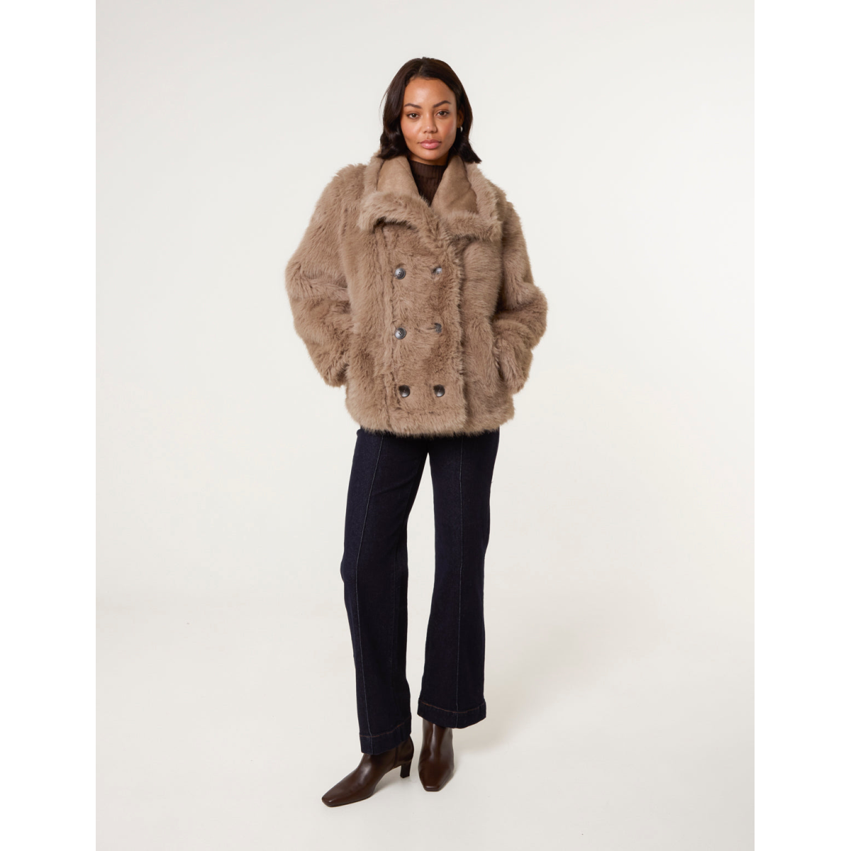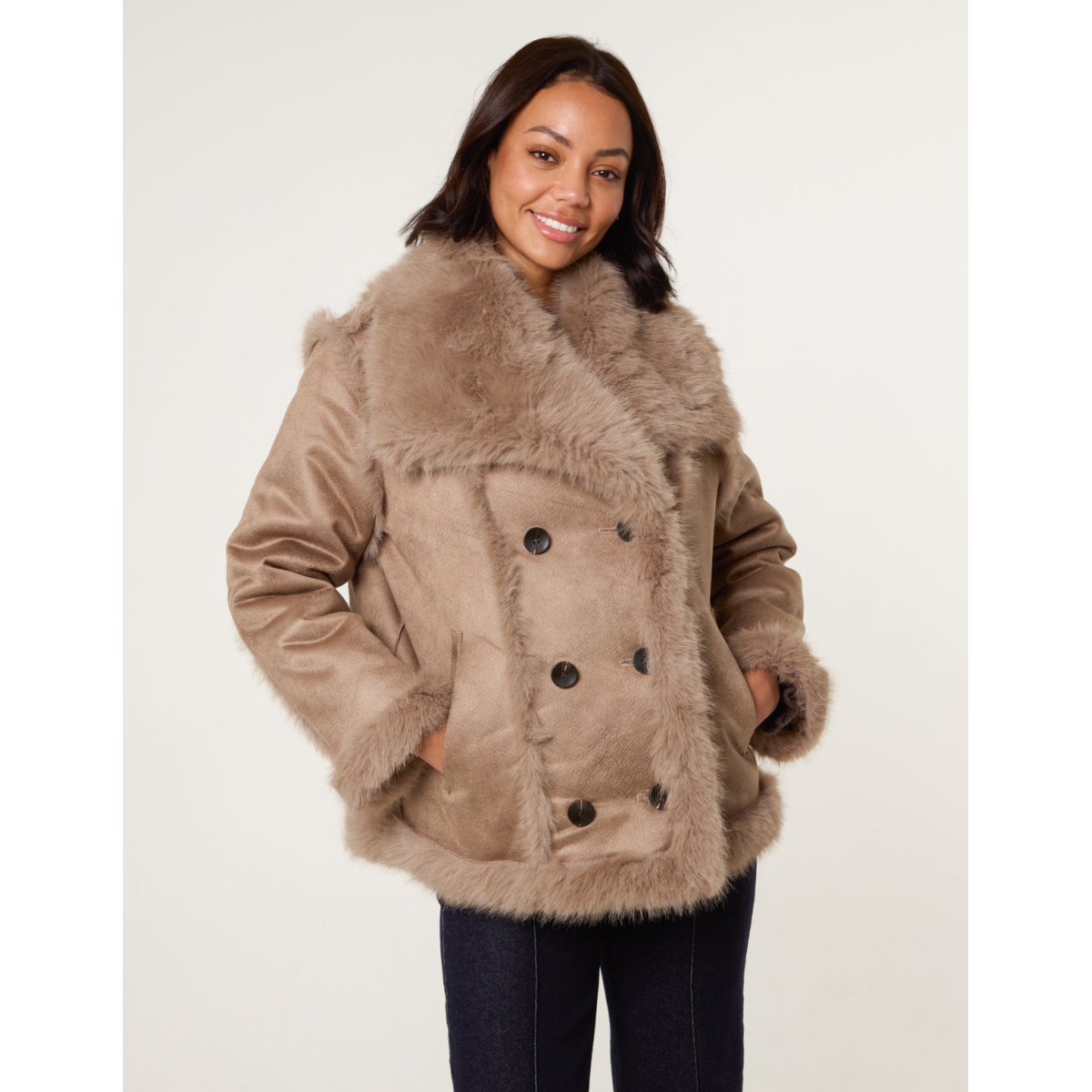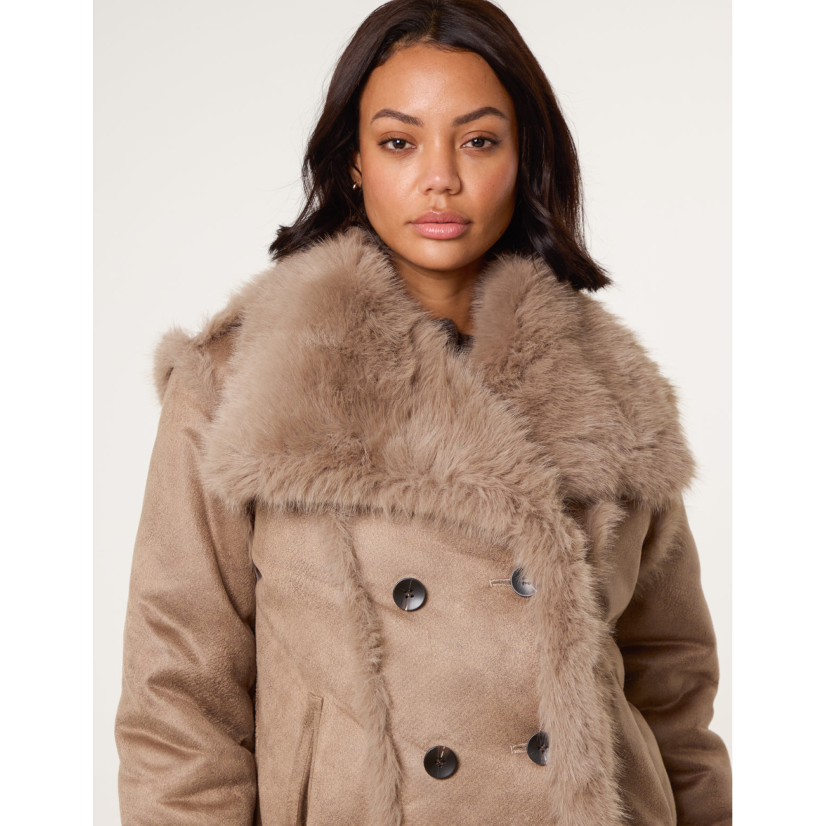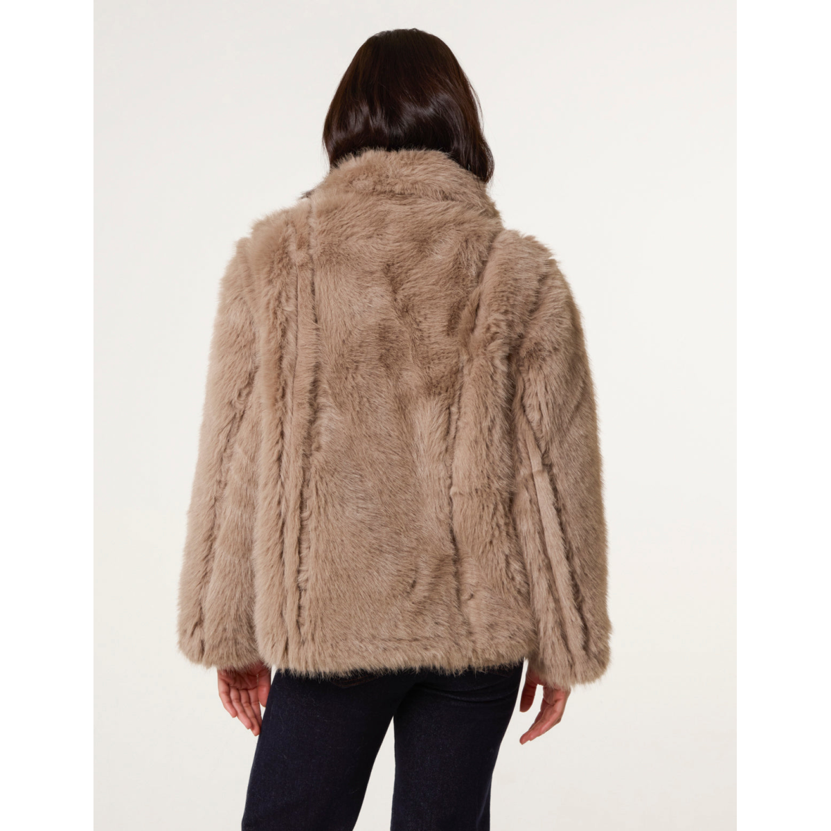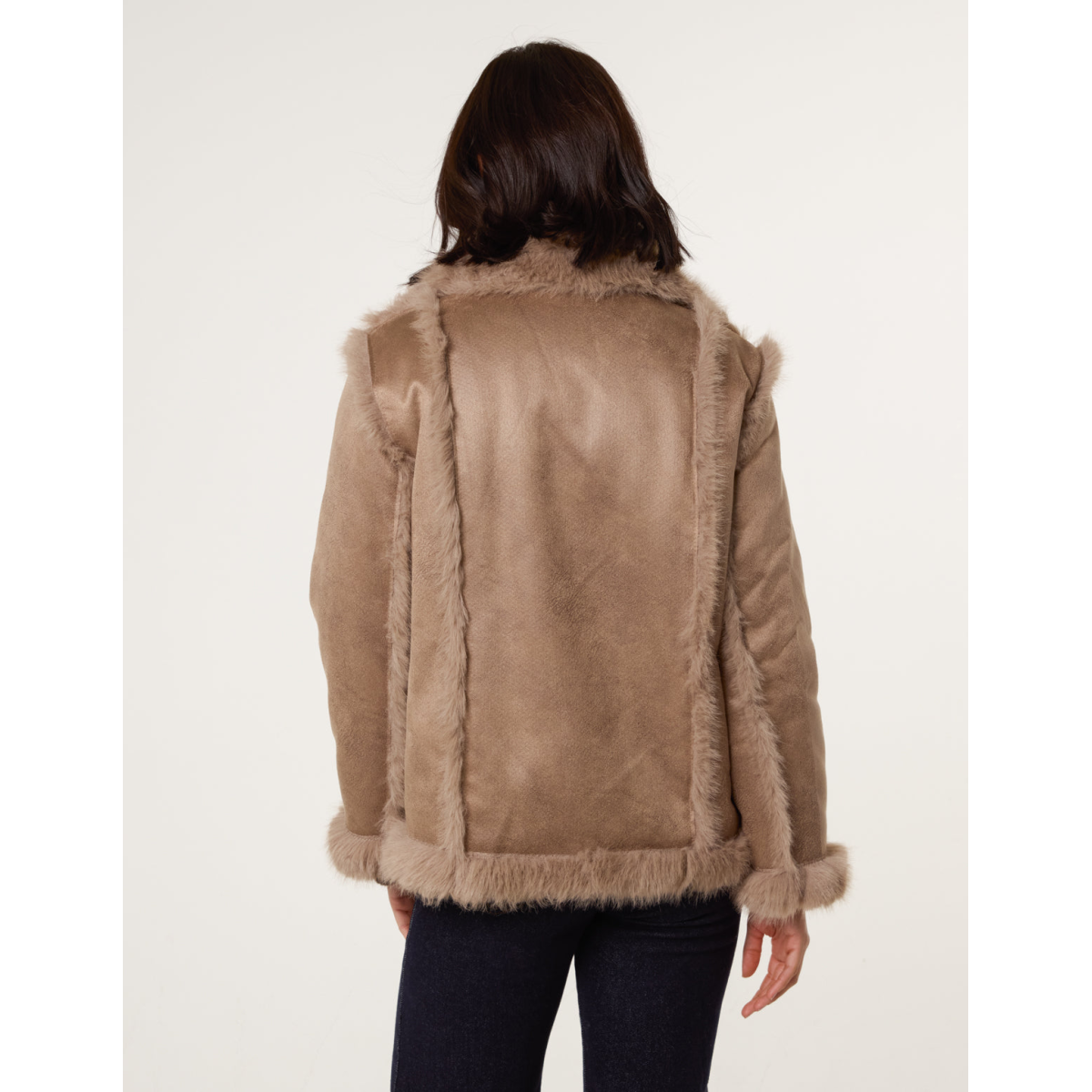 A stunning reversible faux fur coat with trim details. This coat will provide all the glam you need all season long.