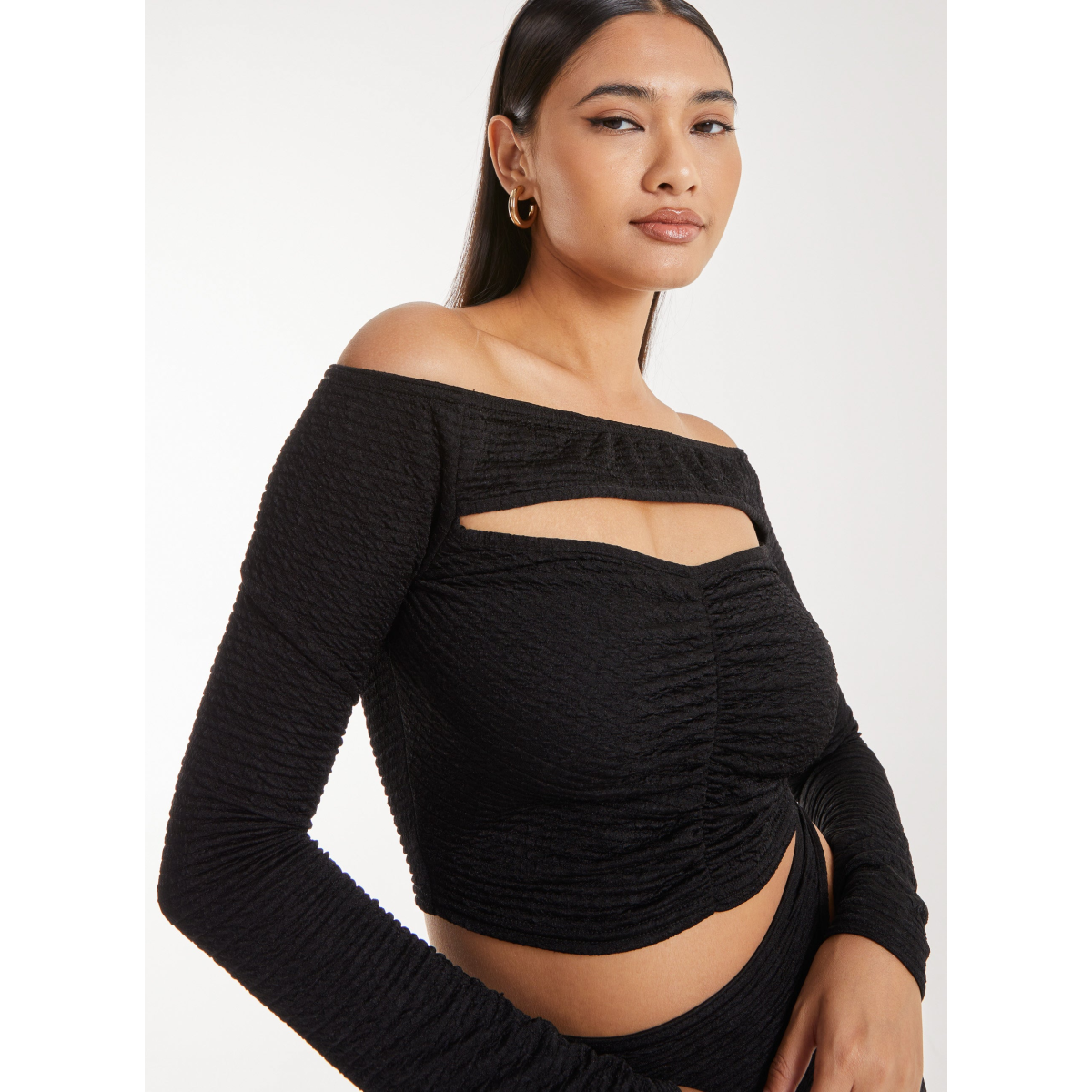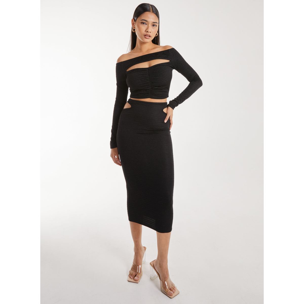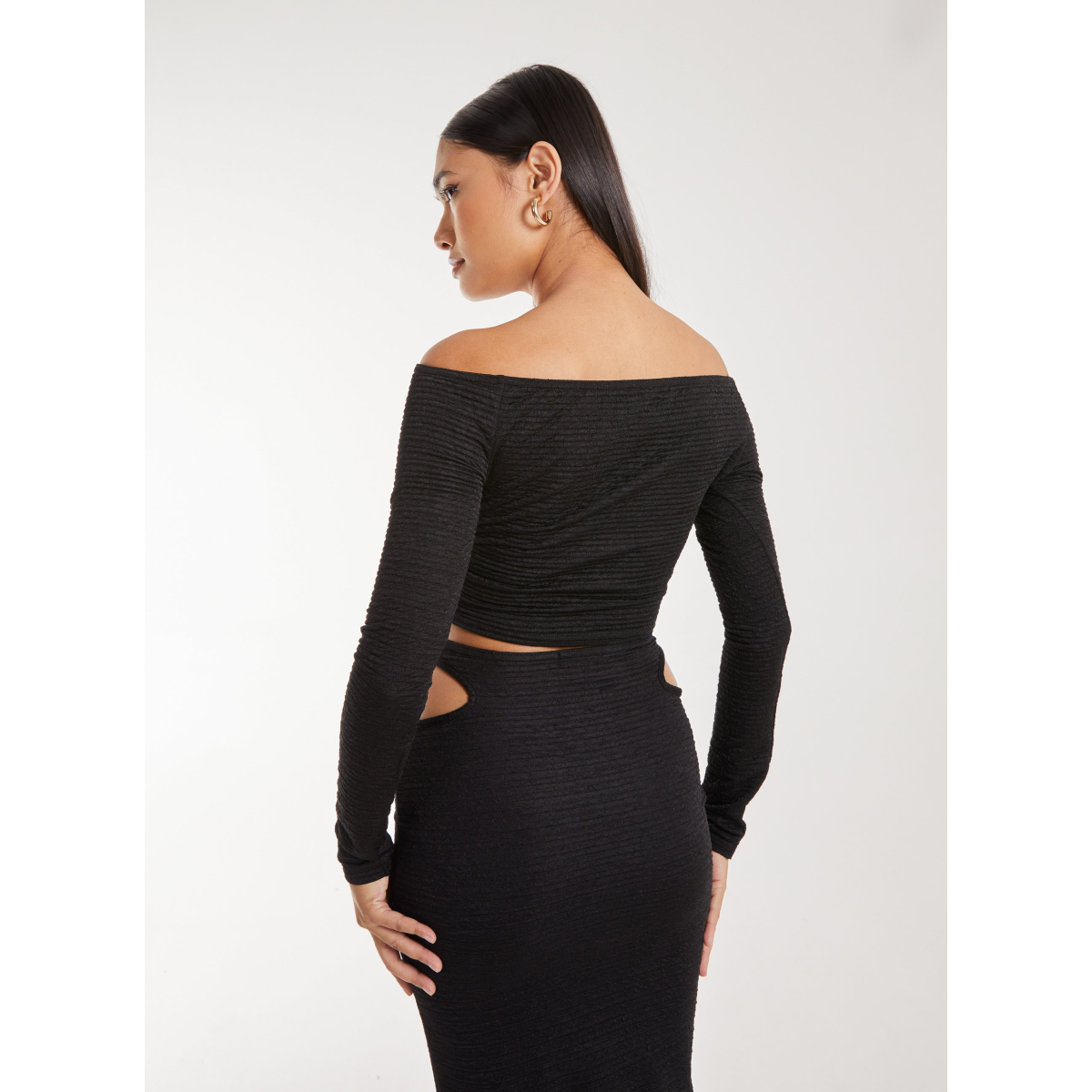 Get cosy and casual this season and ensure to look super trendy wearing this ripple letterbox long sleeve top. Pair with our  Ripple Cut Out Midi Skirt.