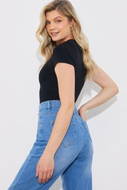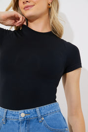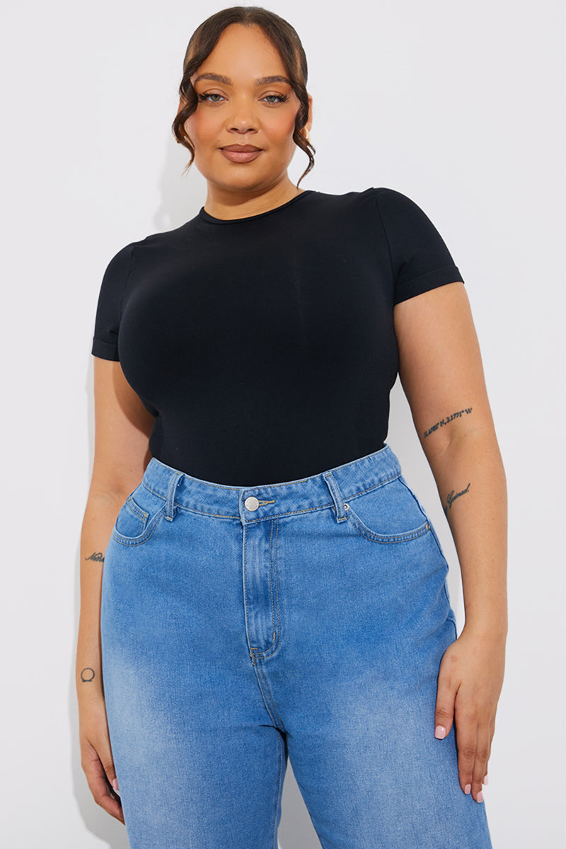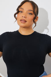 A black bodysuit is a must for every wardrobe and our new fITS black crew neck short sleeve shaping bodysuit will put every other bodysuit to shame. Tuck into jeans, shorts or a skirt.Â