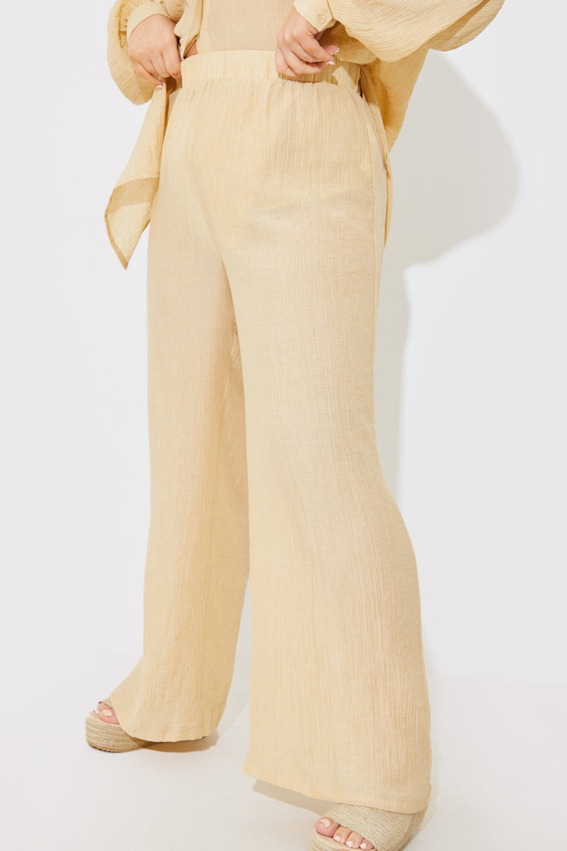 These camel crinkle wide leg trousers is everything you need for summer. Pair with the matching crinkle shirt for the cutest look.