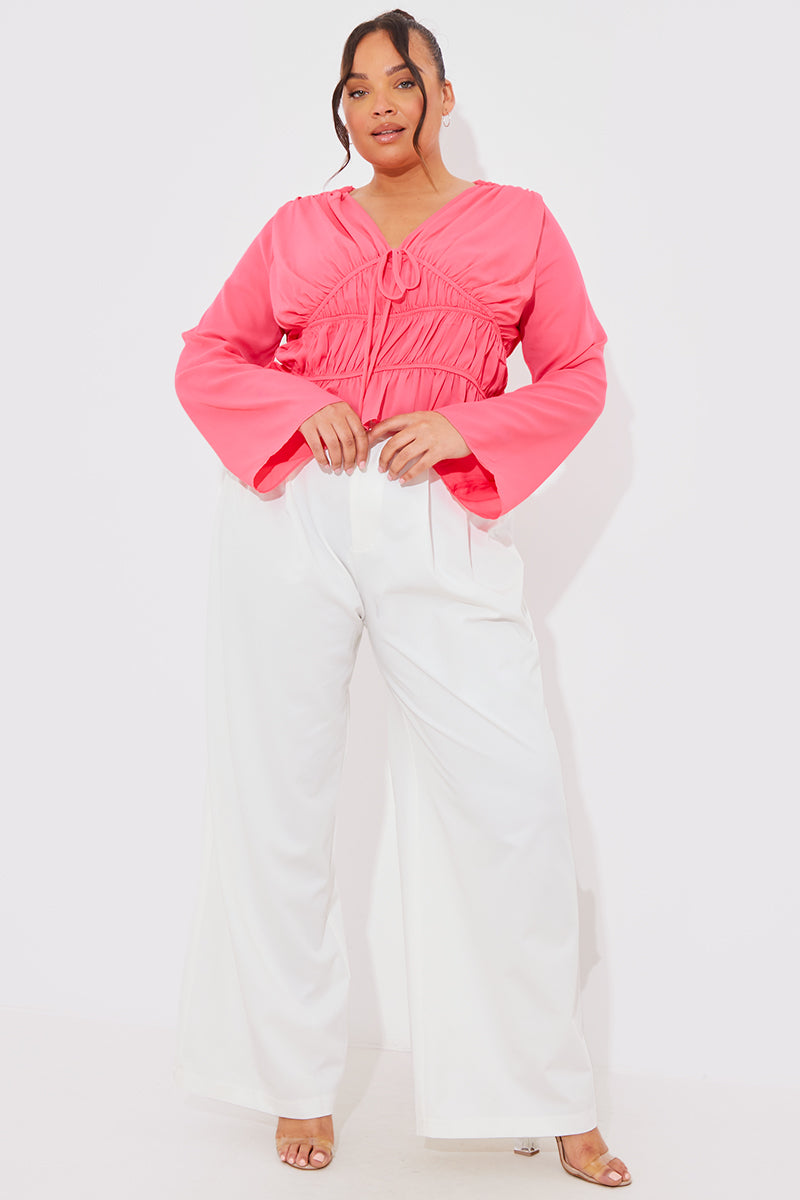 This top is an essential for your summer wardrobe. In a coral material with shirred detailing. Pair with denim shorts and accessories for a look that will love!