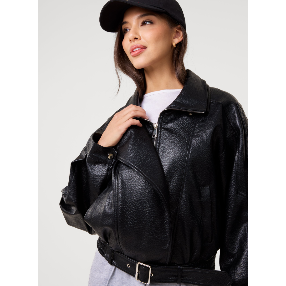 Are you looking for your new fave biker jacket for this autumn/winter? At Pink Vanilla, we got you covered with our Oversized PU Leather Jacket. Featuring a crinkled leather like fabric, a collared neck and balloon like sleeves, the oversized fit just adds the perfect stylish/streetwear combo. You're new go to layer up for the season has landed!