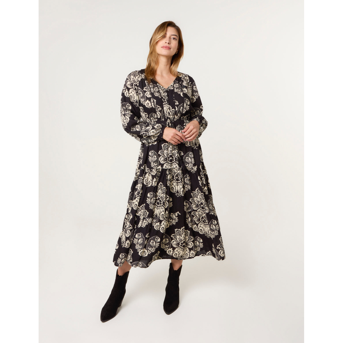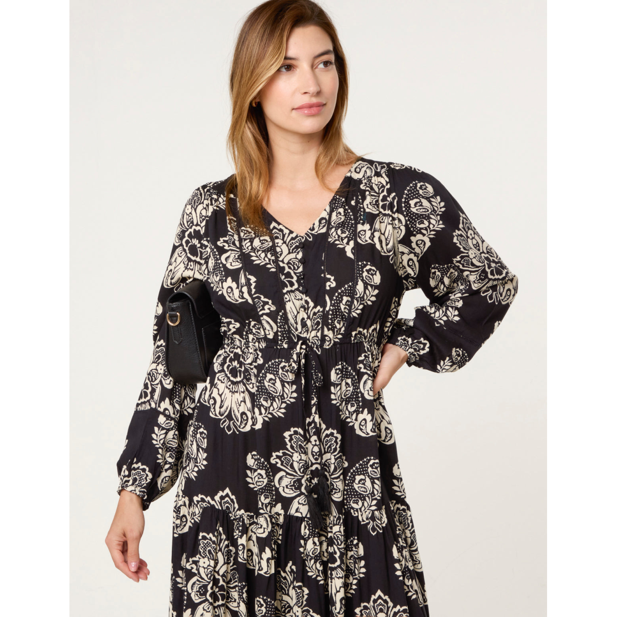 Pleated detailing and tassel tie front, here is the perfect dress to wear to dinner this season. Team with beige court heels.