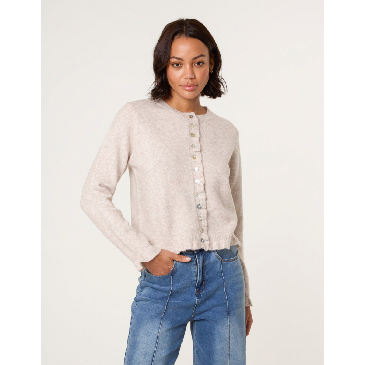 Cardigan With Ruffle Trim