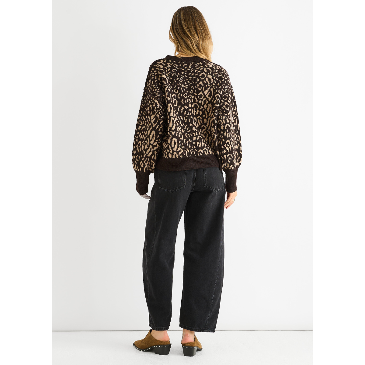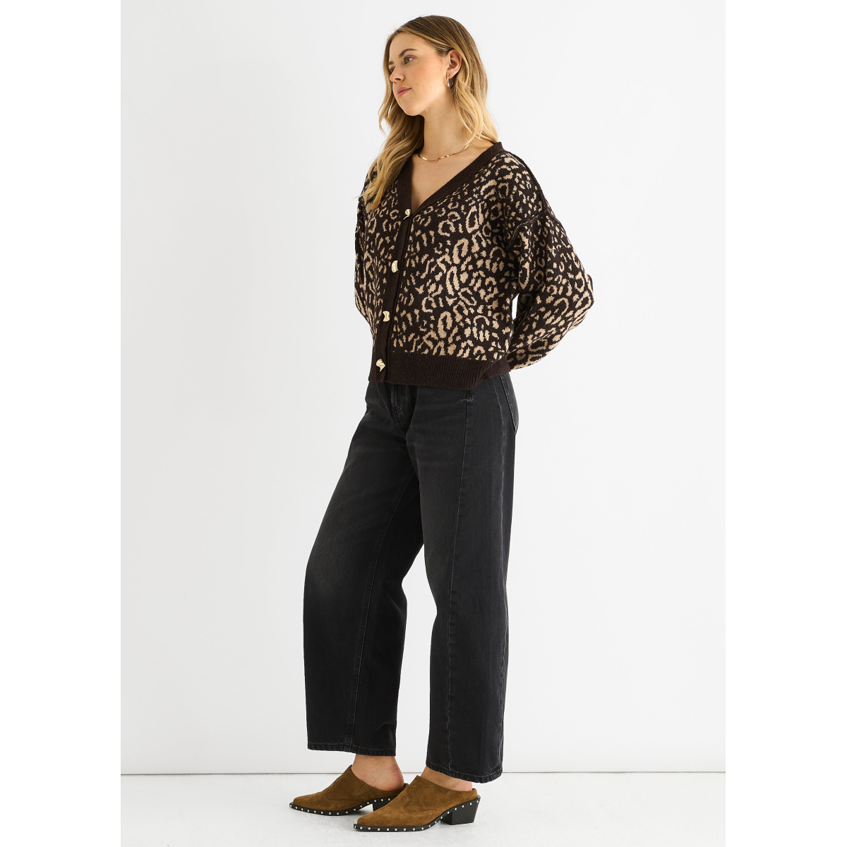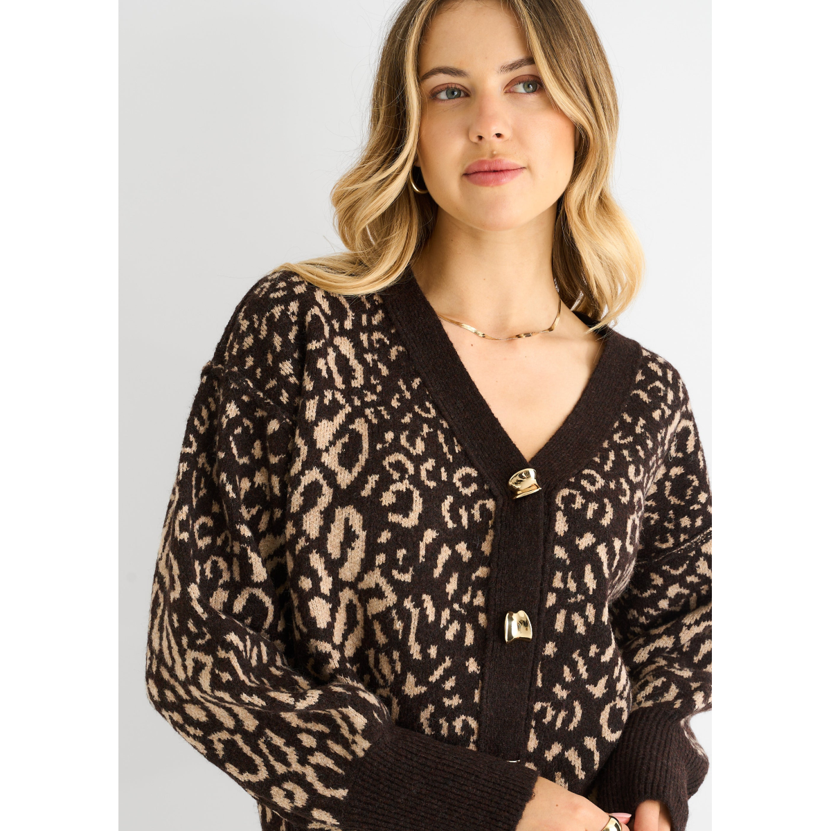 Chocolate Animal Print Wool Mix Cardigan Look Jumper