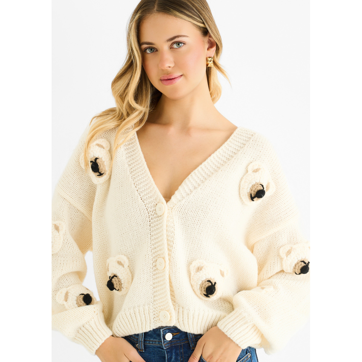 Stay warm and stylish with the Cream 3D Contrast Teddy Crochet Cardigan. Its plush teddy fabric and bold 3D crochet details create a comfortable, casual look that stands out. Perfect for layering, this cardigan adds texture and personality to any outfit.