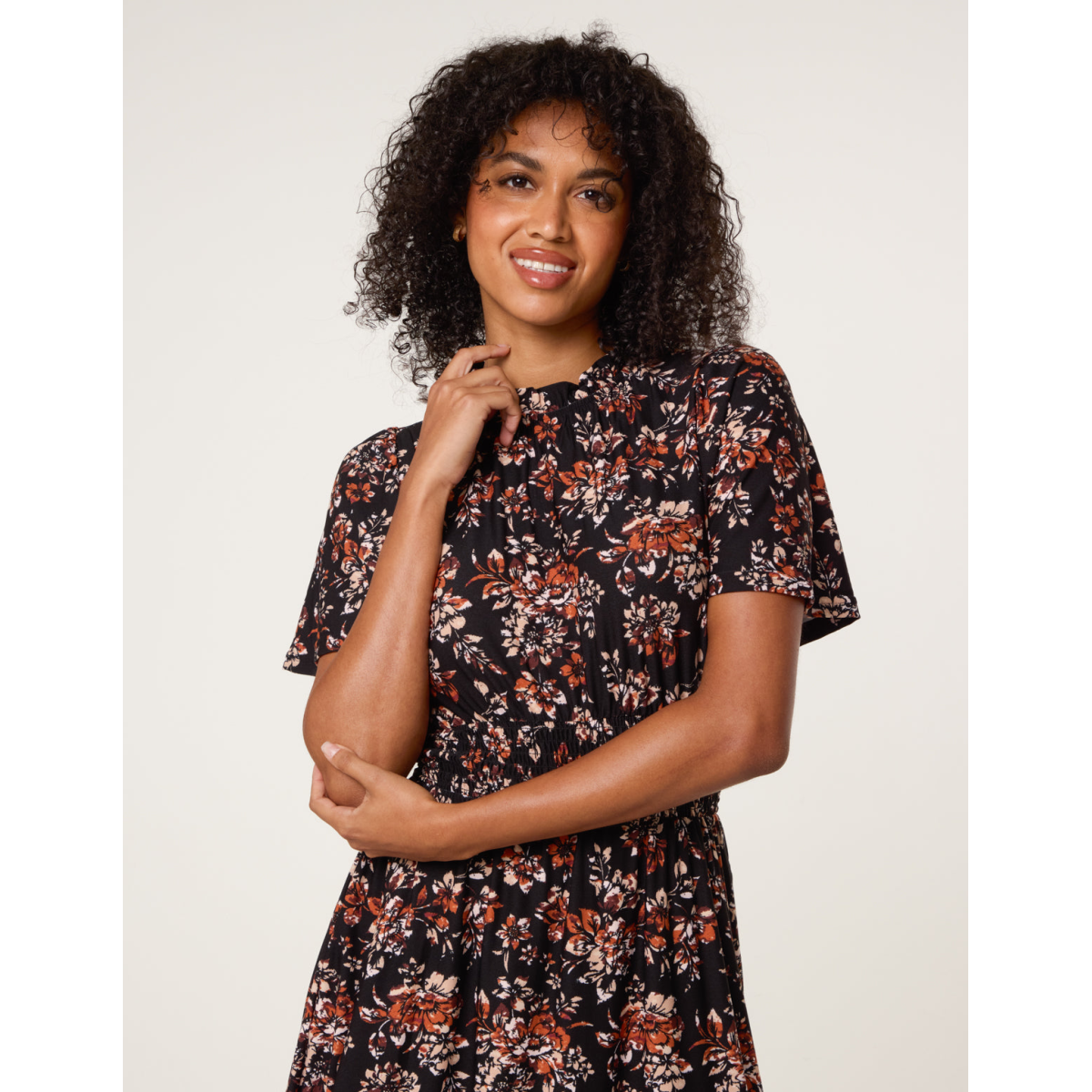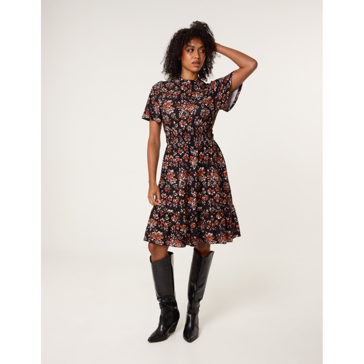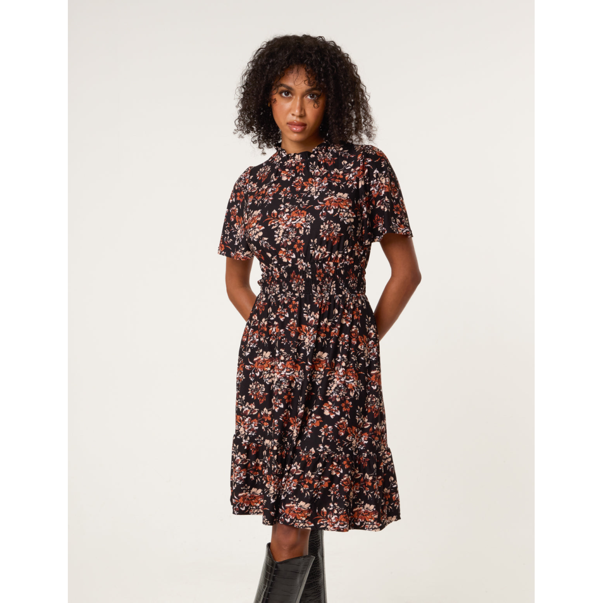 The dress that screams autumnal! With it's winter florals and autumnal colourways. Team this shirred waist midi with tights and boots.
