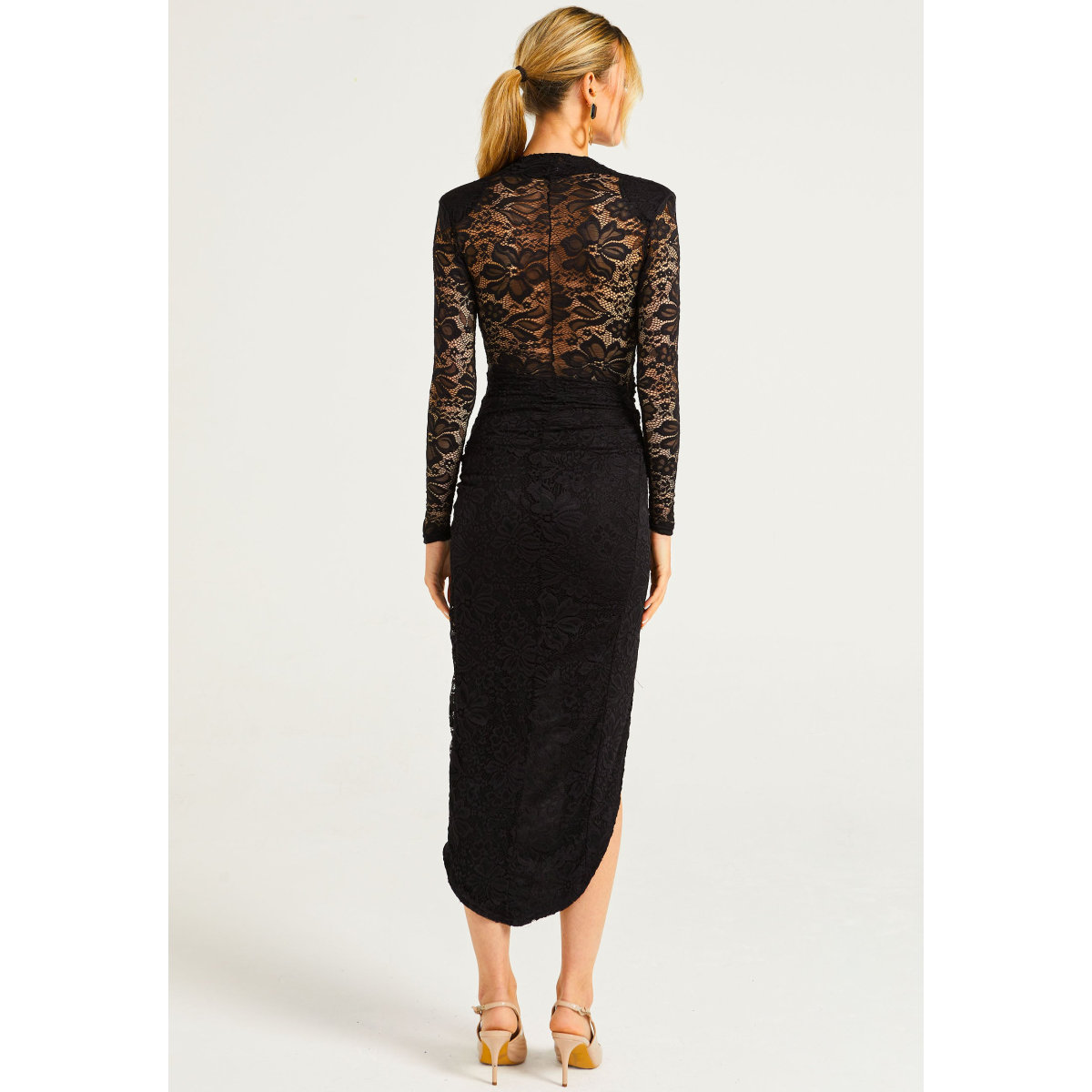Be sure to impress when you step out in the Lace Bodycon Wrap Midi Dress by ANGELEYE. This body-hugging midi will flatter your silhouette to perfection. Lace adds a touch of elegance to this classic style. Teamed with some heeled sandals and a mini bag, you're ready to go!