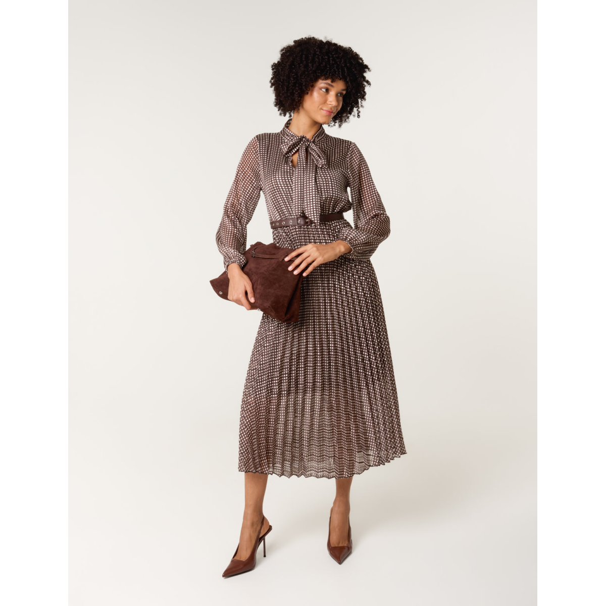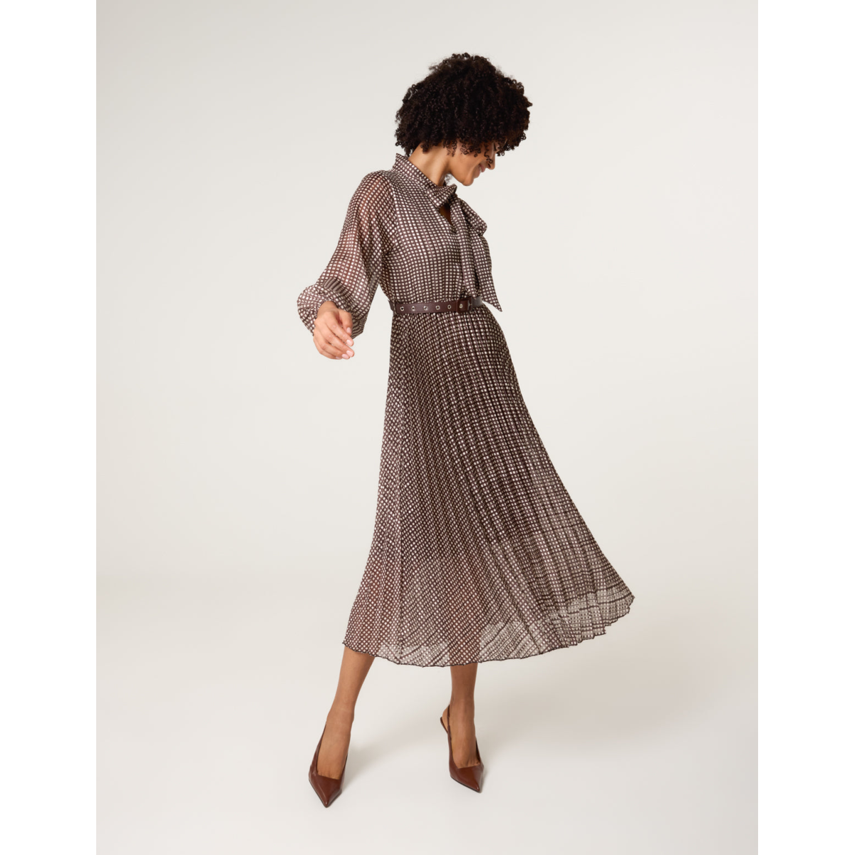 This pleated dress is an elegant option for the new season ahead. With it's belted waist nipping you in at the waist, let this dress be your next purchase.