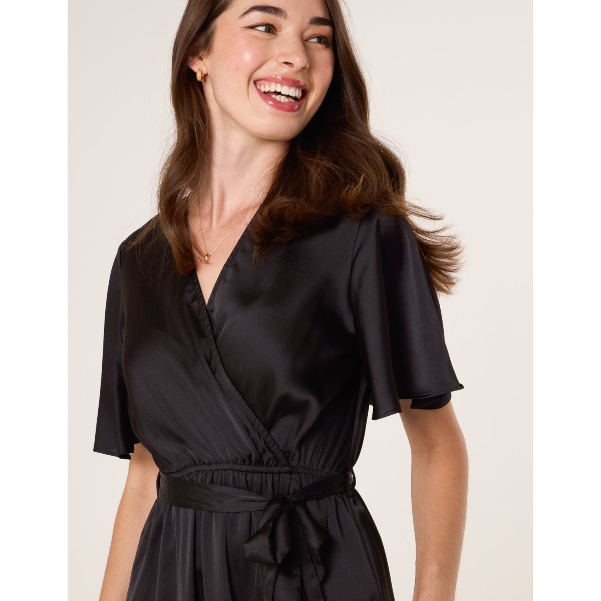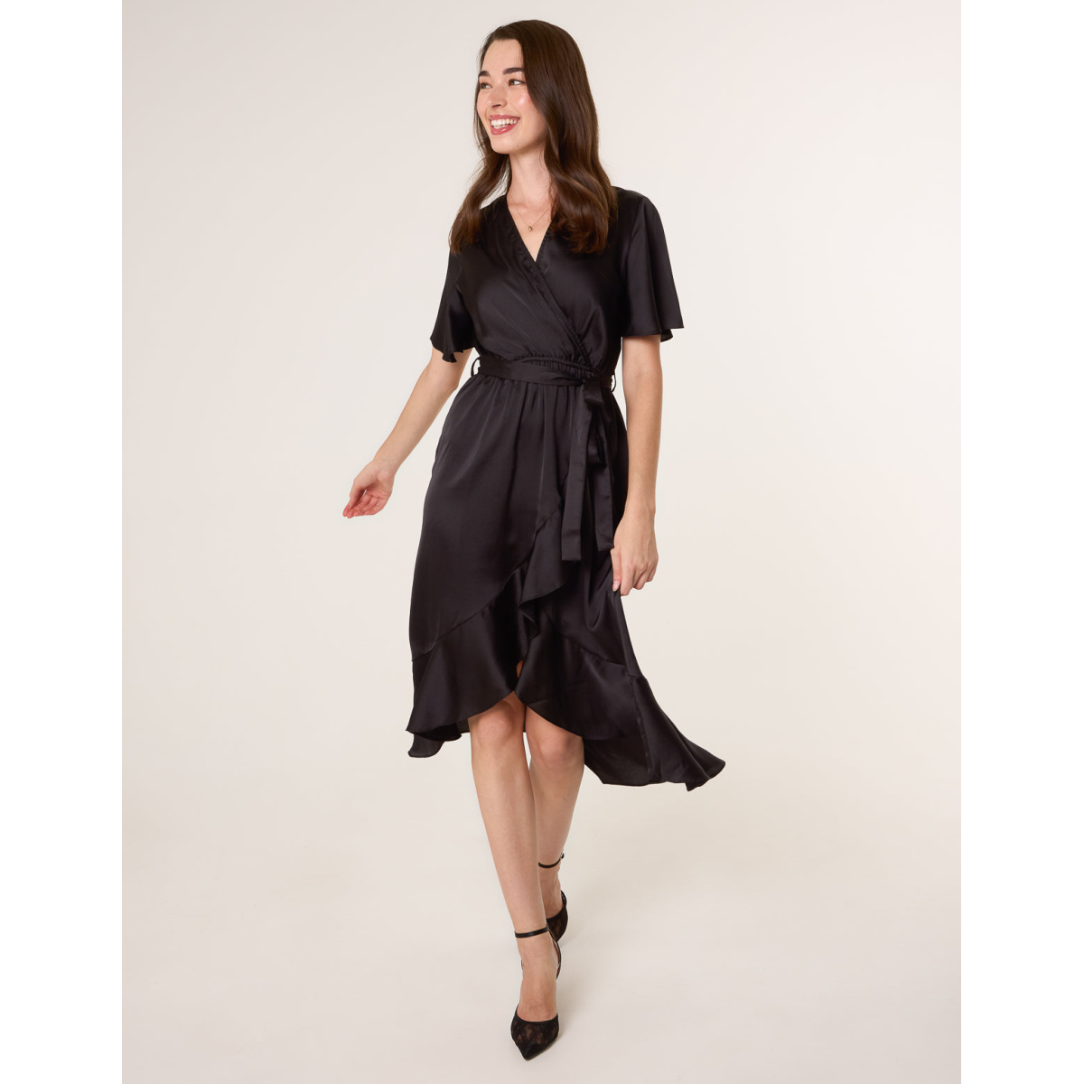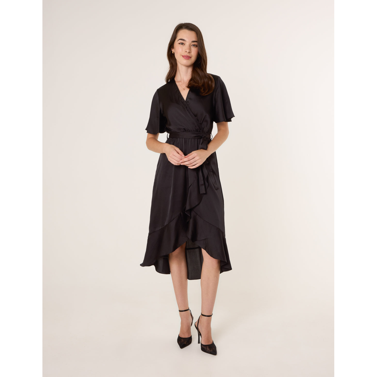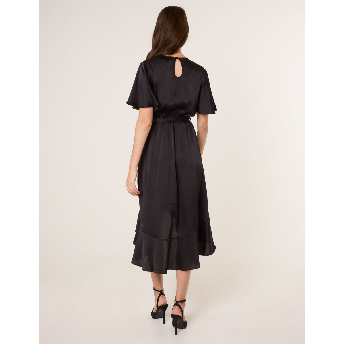 This satin midi dress will instantly elevate after dark occasions. With it's autumnal colourway to it's frill hemline. Team this dress with gold heels and accessories.