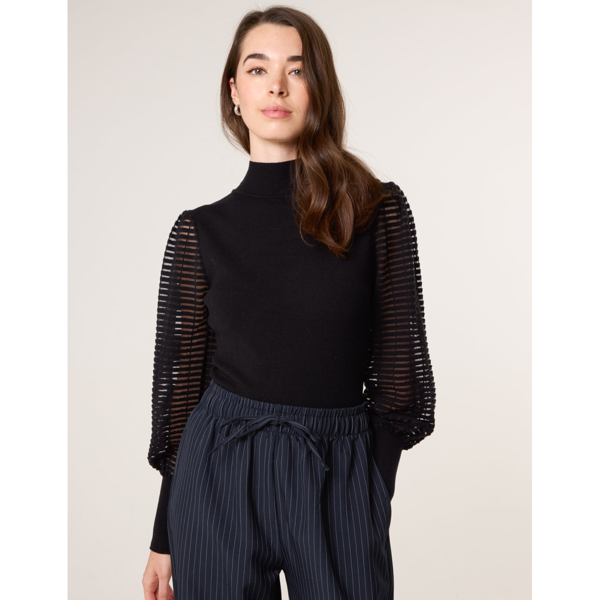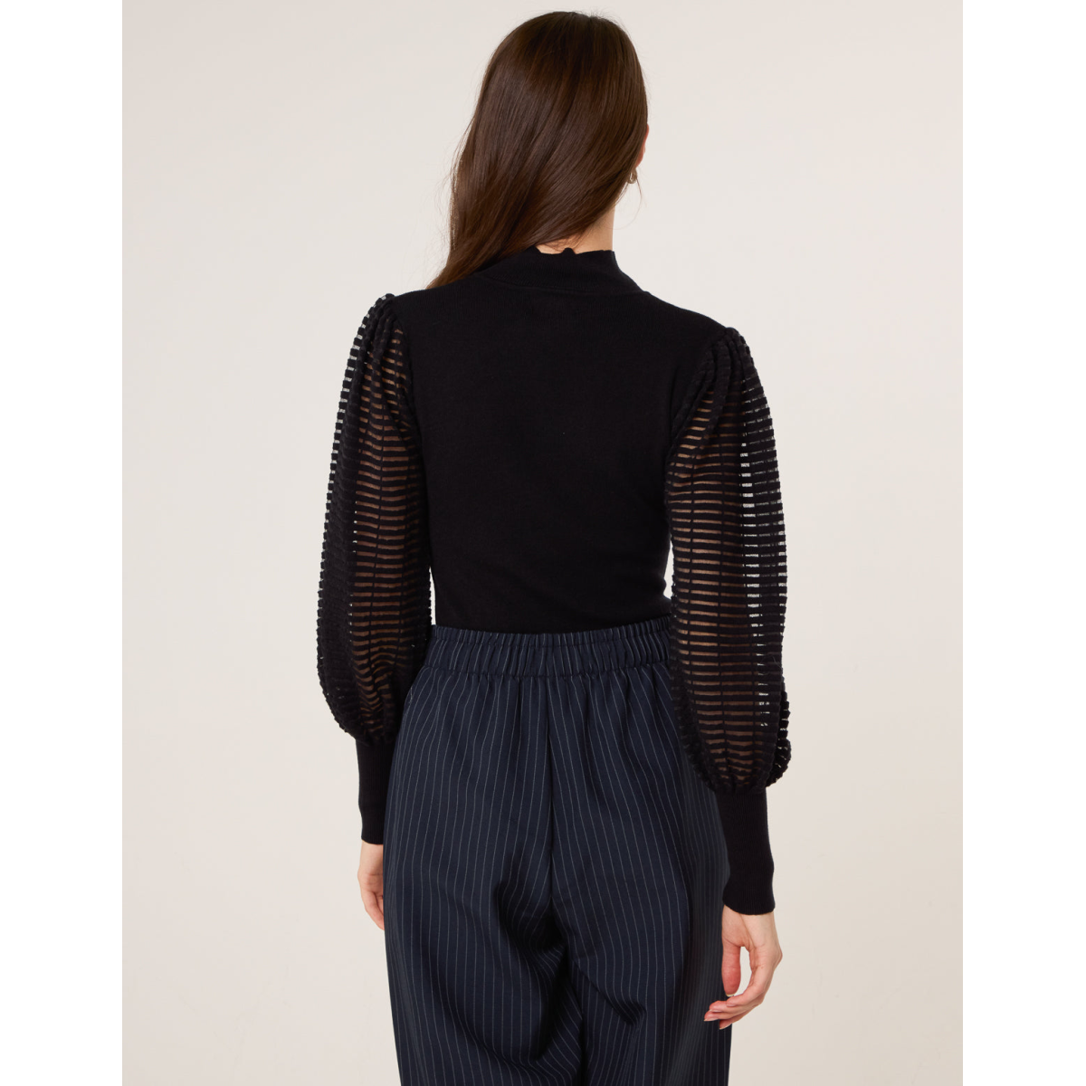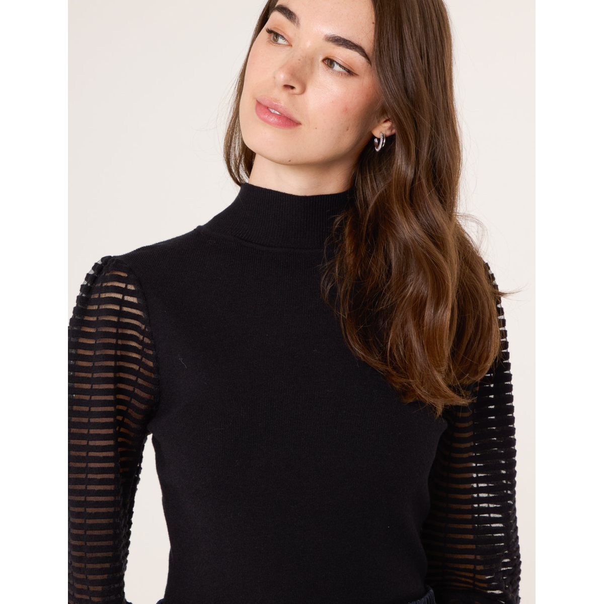 Semi-Sheer Mesh Panel Long Sleeve Jumper