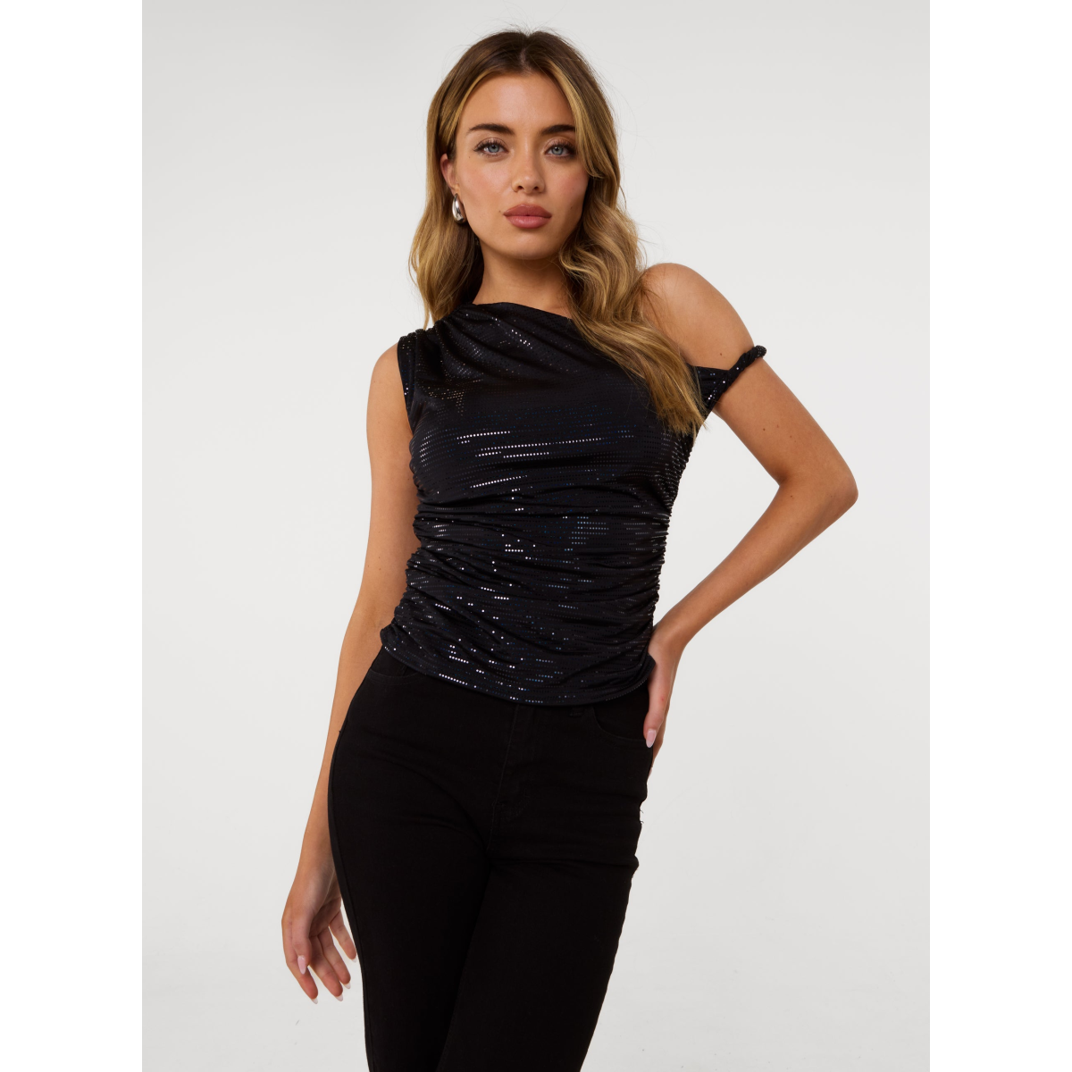 Party like a disco star with this super-flattering Twist Shoulder Disco Top.