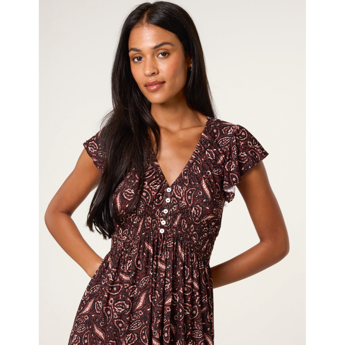 Elasticated V neckline